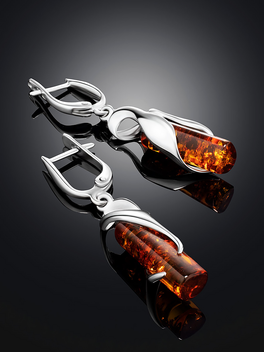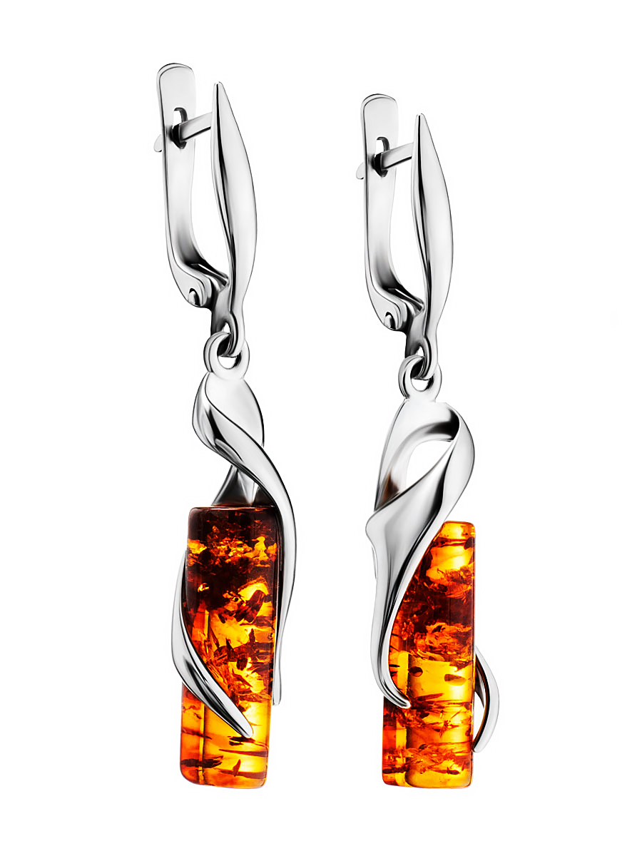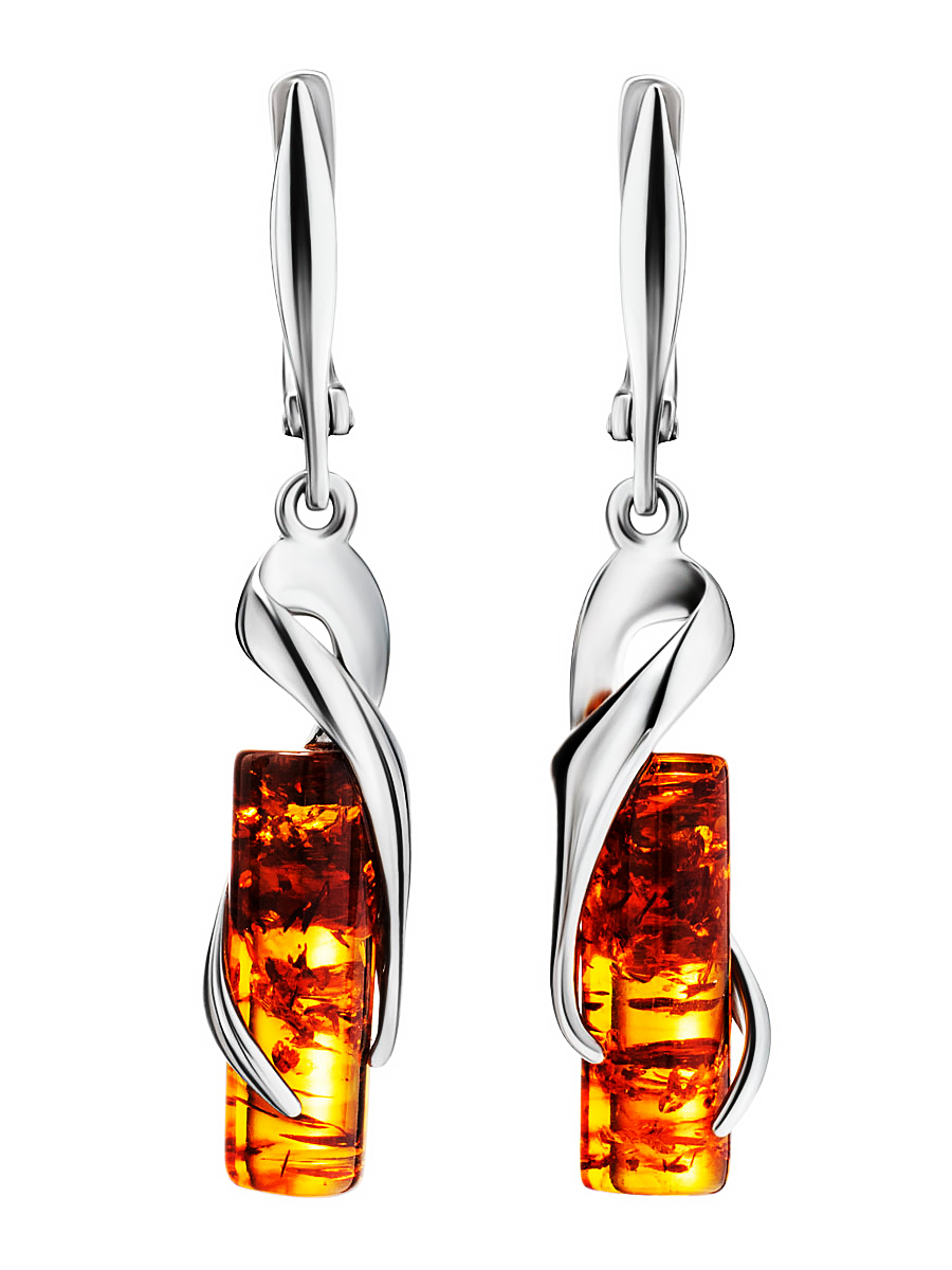Изысканные серьги «Скандинавия» с коньячным янтарём