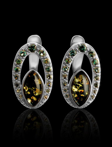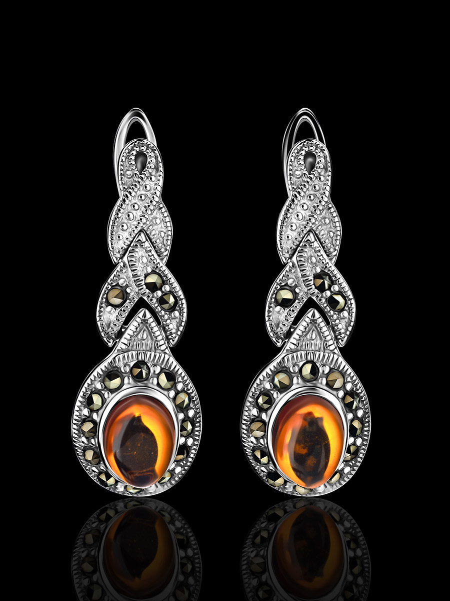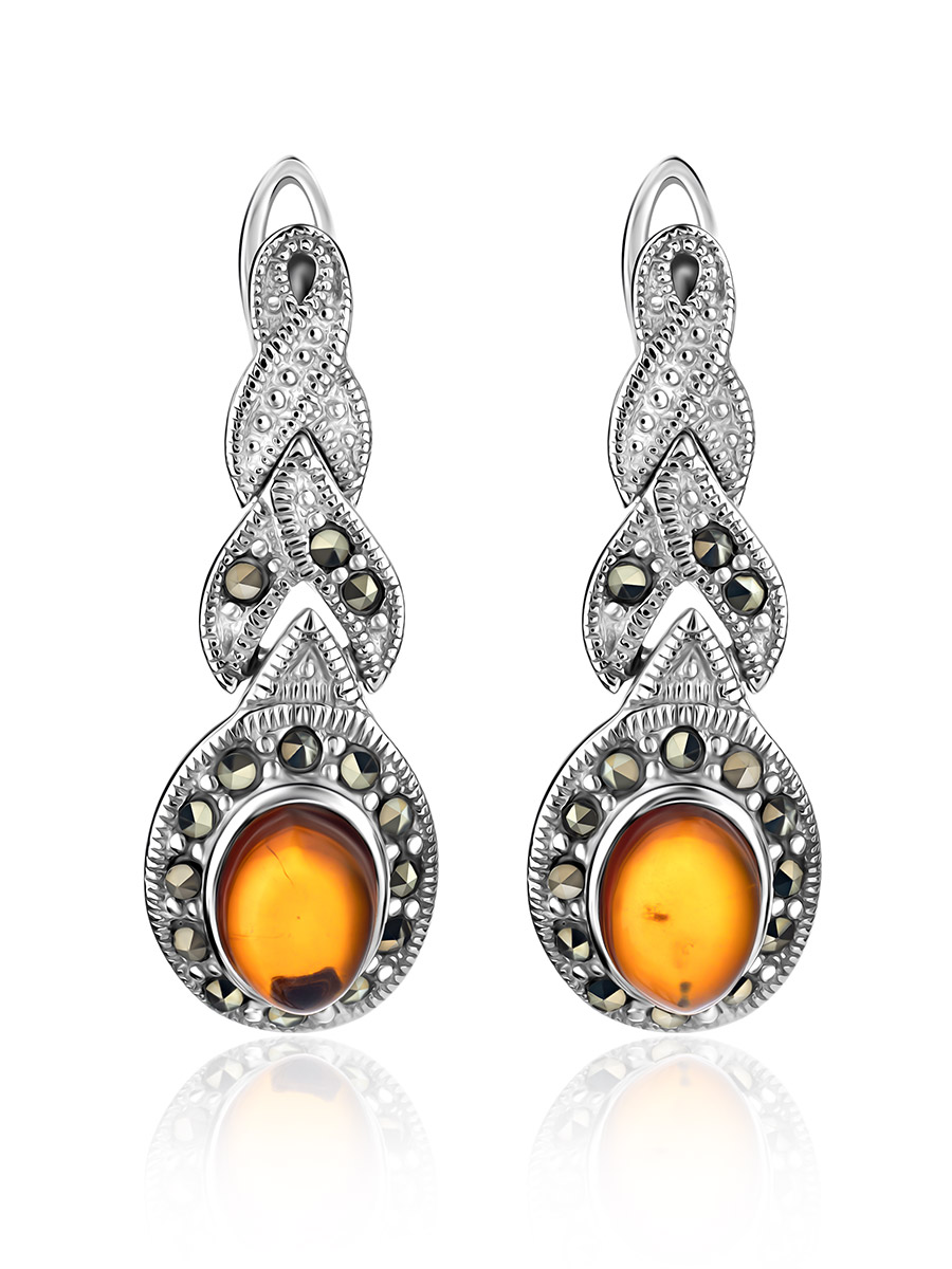 Изысканные серьги, украшенные марказитами и янтарём «Эйфория»