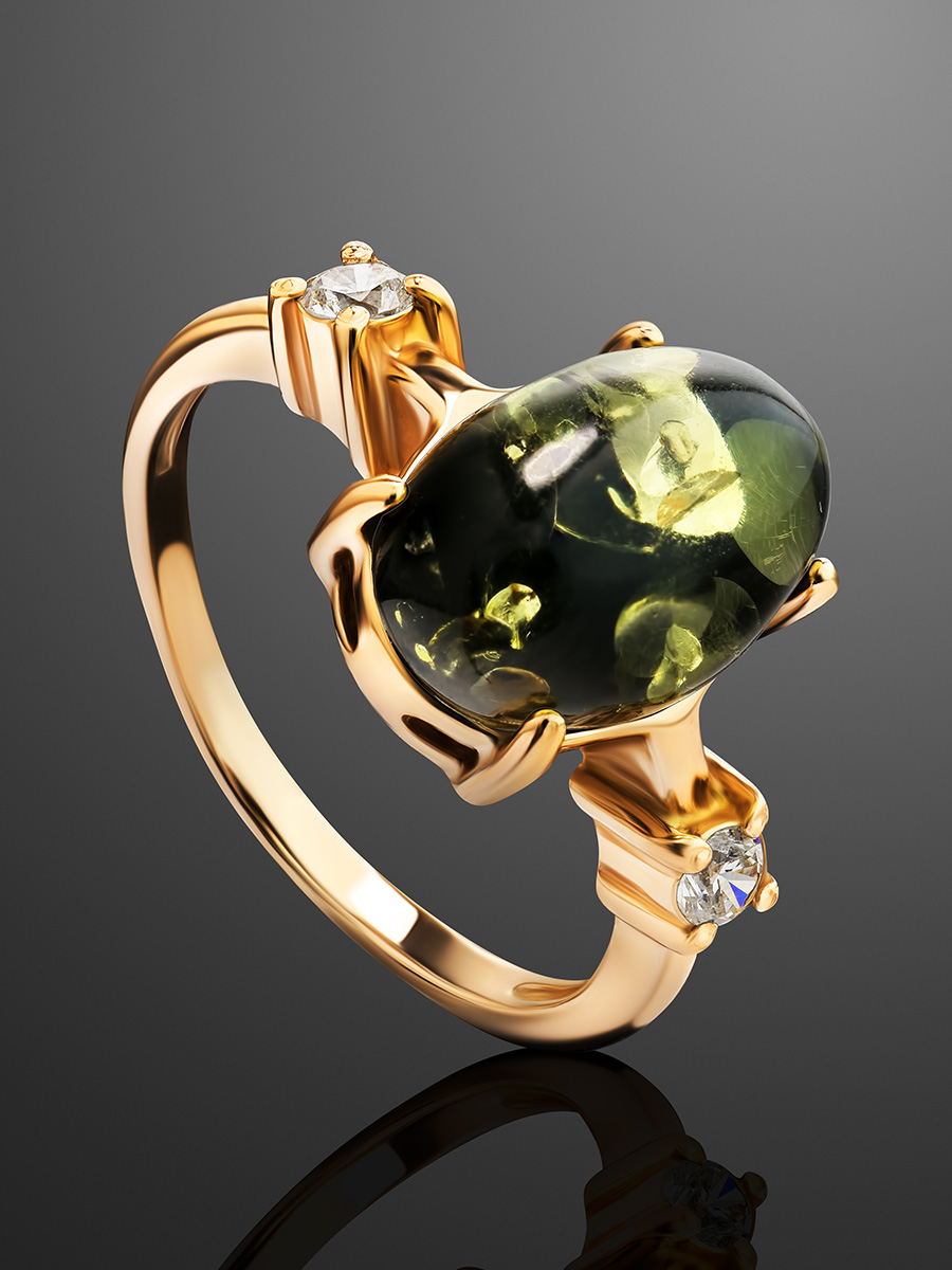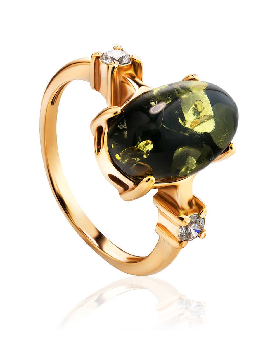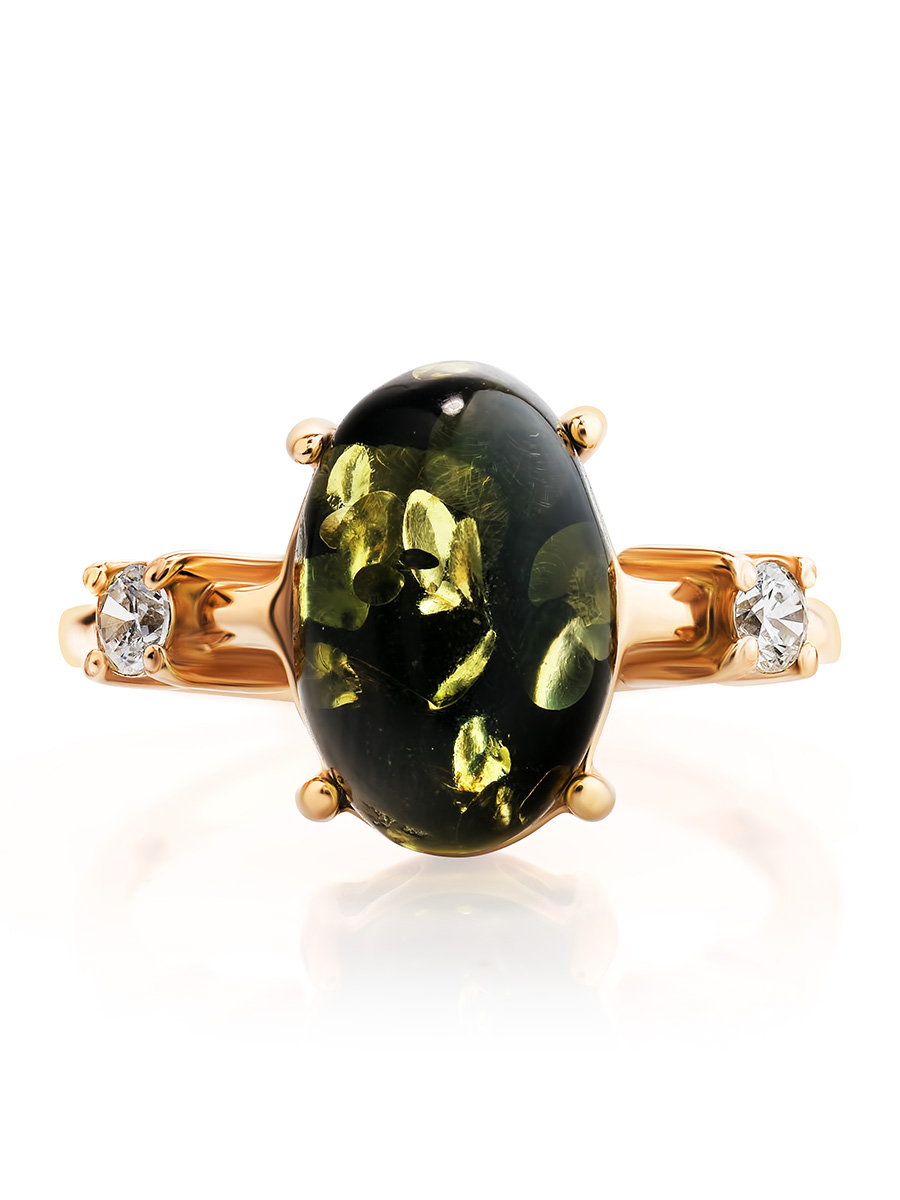 Классическое кольцо «Ностальгия» из зелёного янтаря