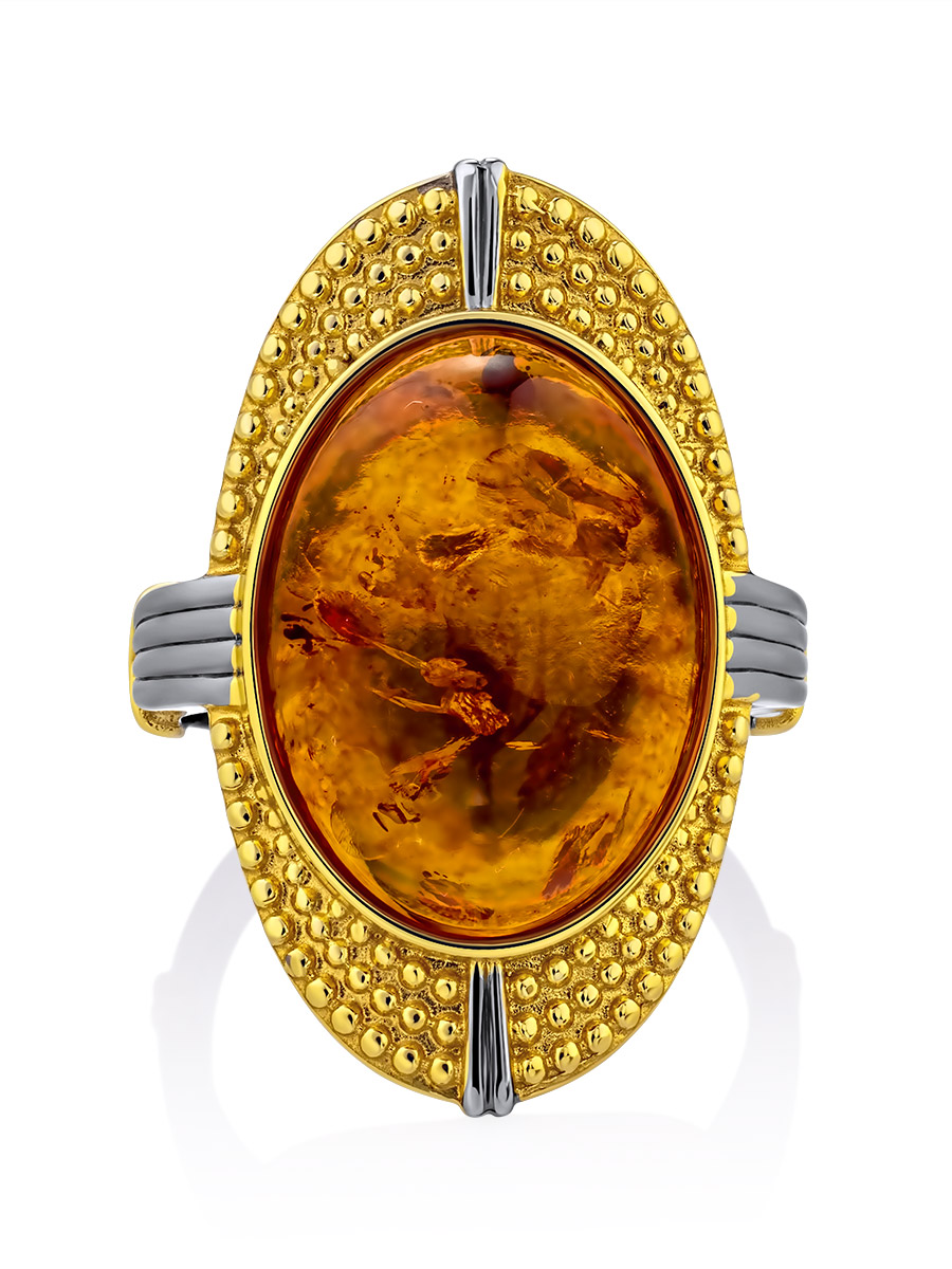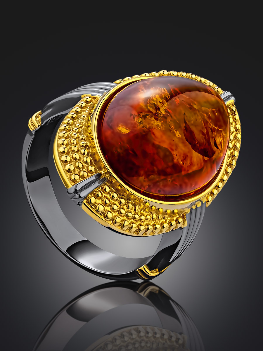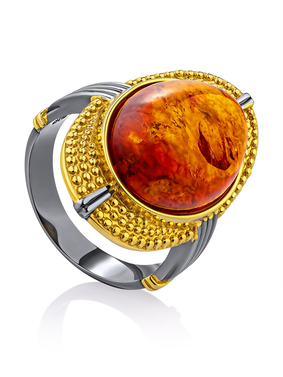 Коктейльное кольцо «Мойра» из натурального янтаря коньячного цвета