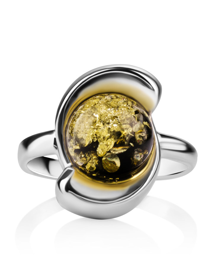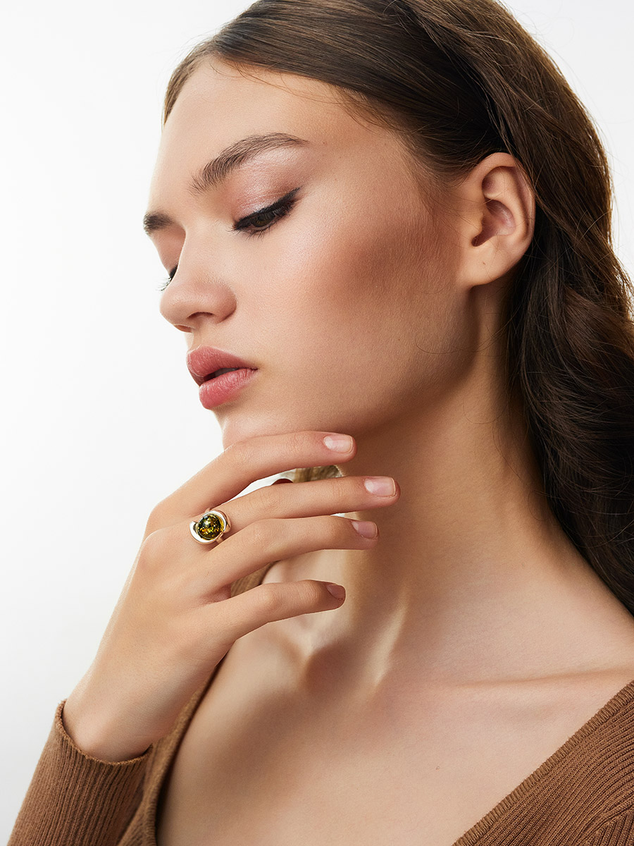 Кольцо «Арго», украшенное янтарём зелёного цвета