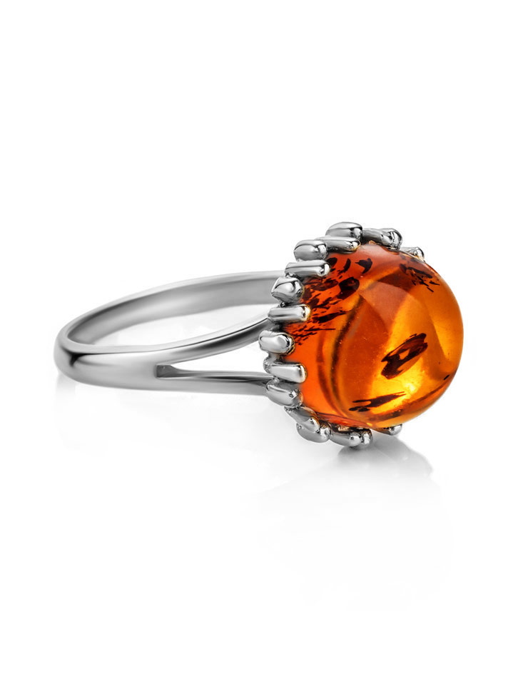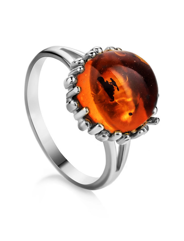 Кольцо «Бруния» с натуральным коньячным янтарём