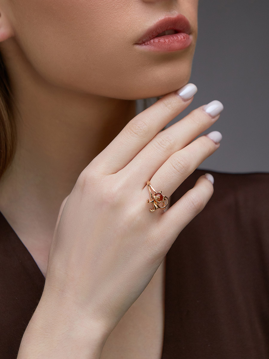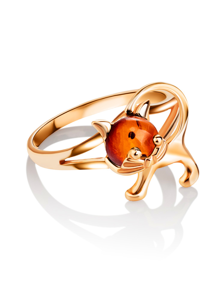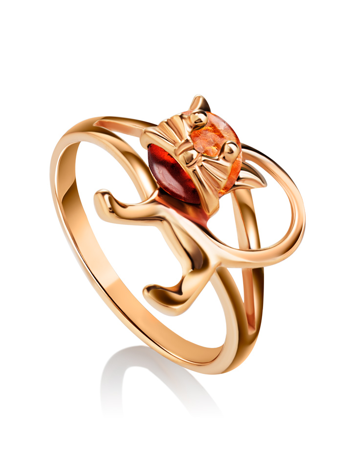 Кольцо «Чешир» из янтаря коньячного цвета