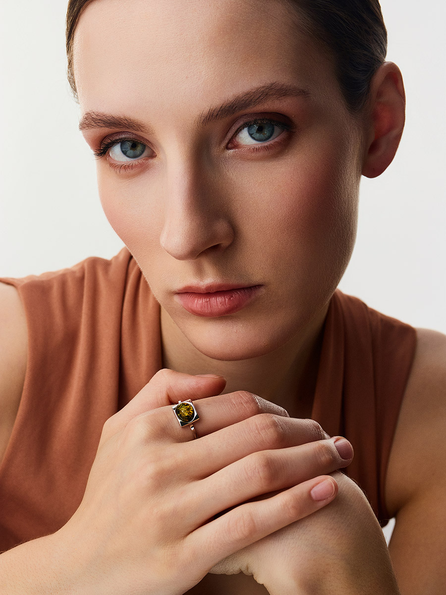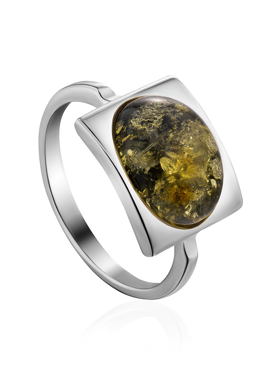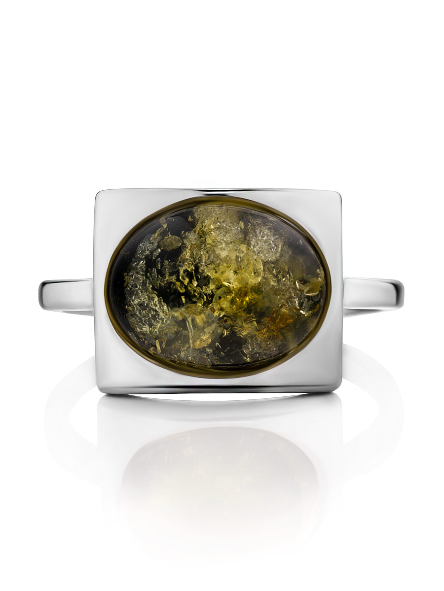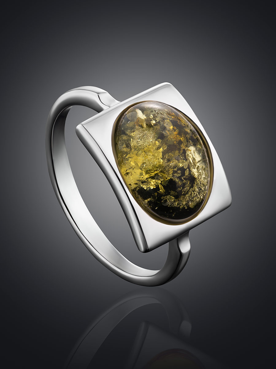 Кольцо «Эллипс» со вставкой искрящегося зеленого янтаря