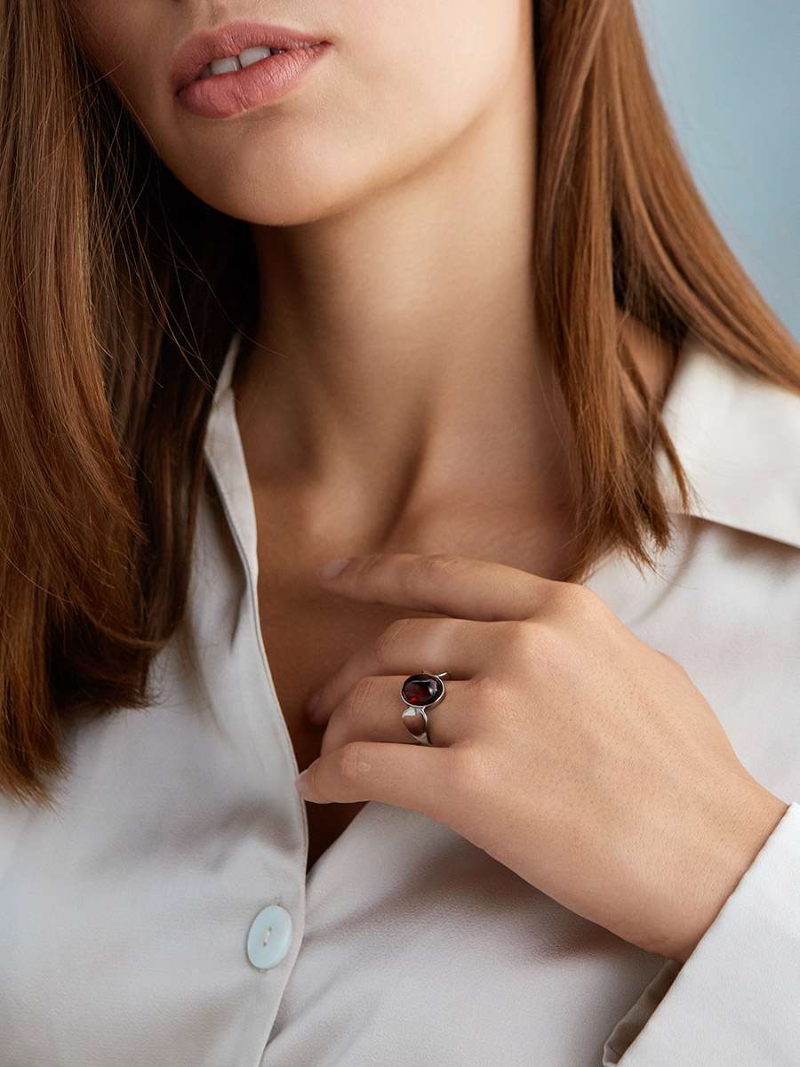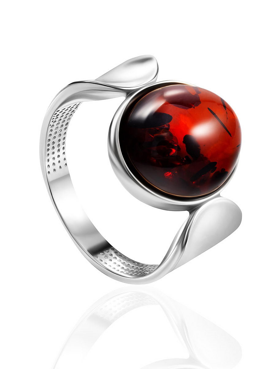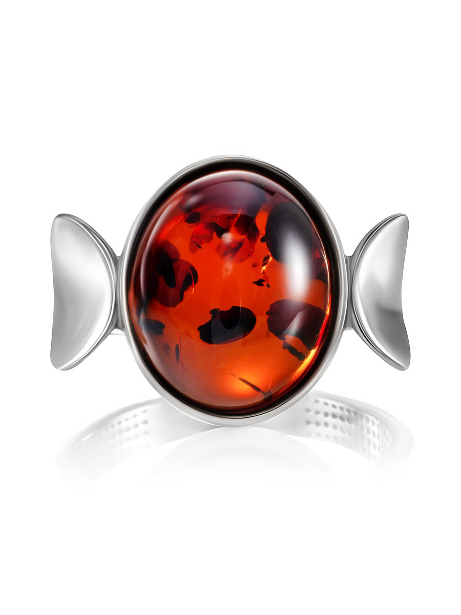 Кольцо «Фиджи» со вставкой насыщенного коньячного янтаря