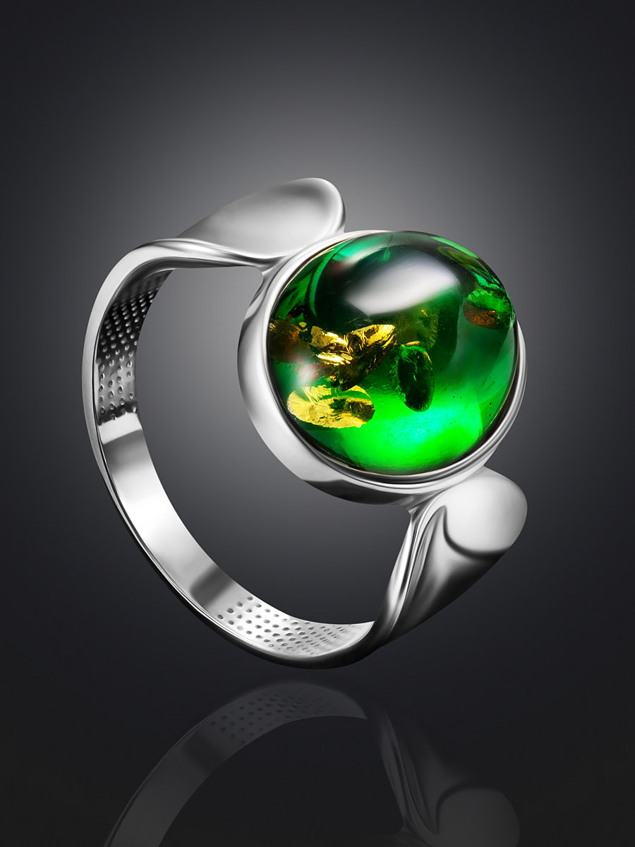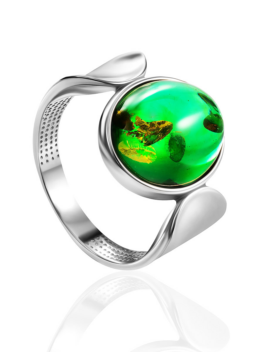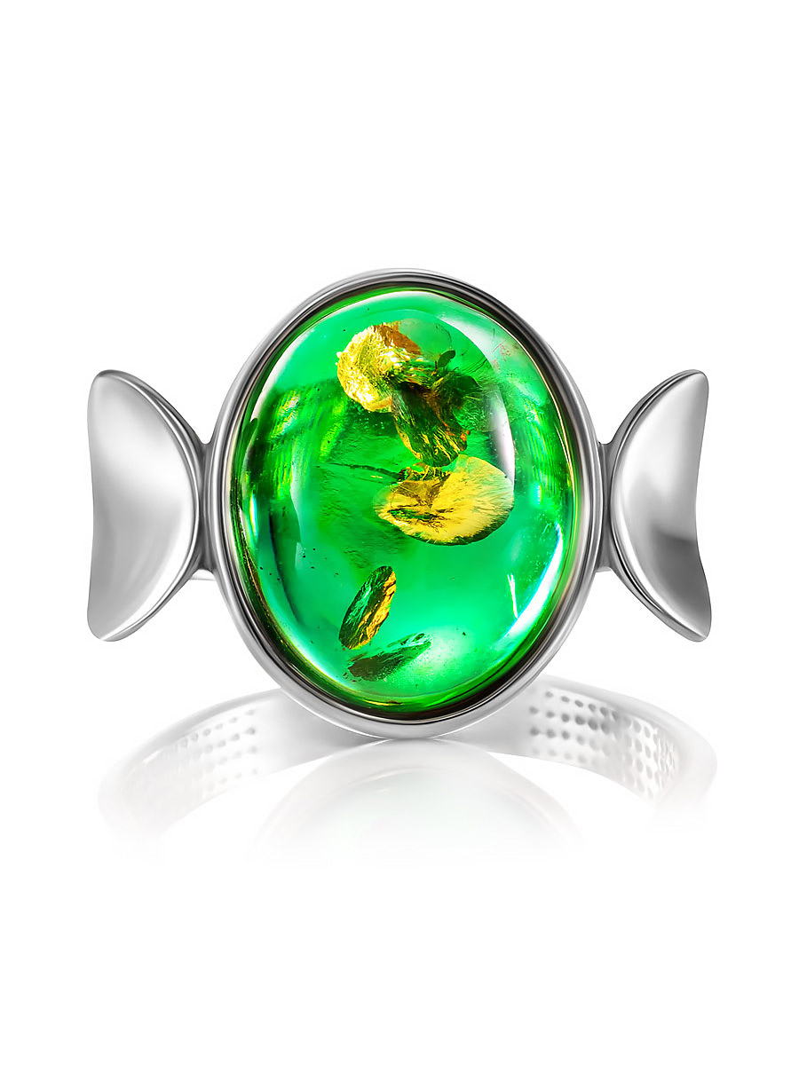 Кольцо «Фиджи» со вставкой янтаря насыщенного изумрудного цвета