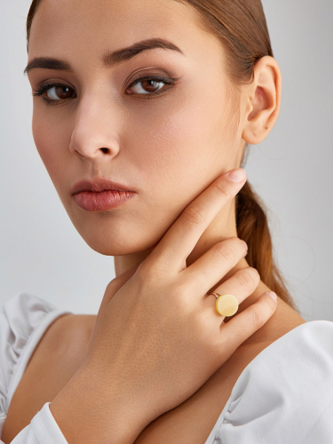 Кольцо «Фурор» с натуральным цельным медовым янтарём