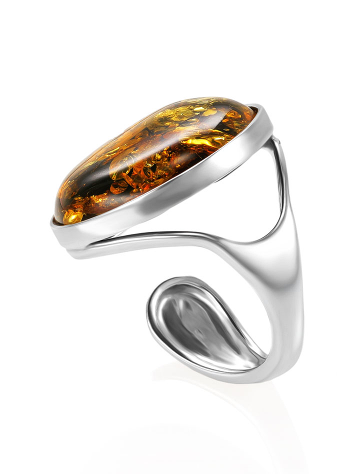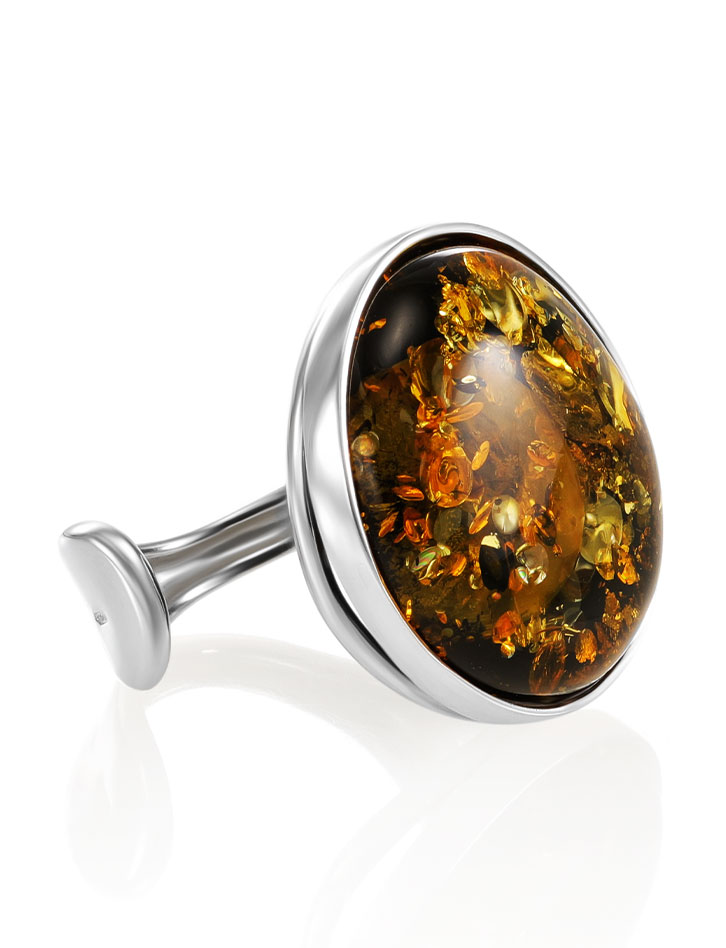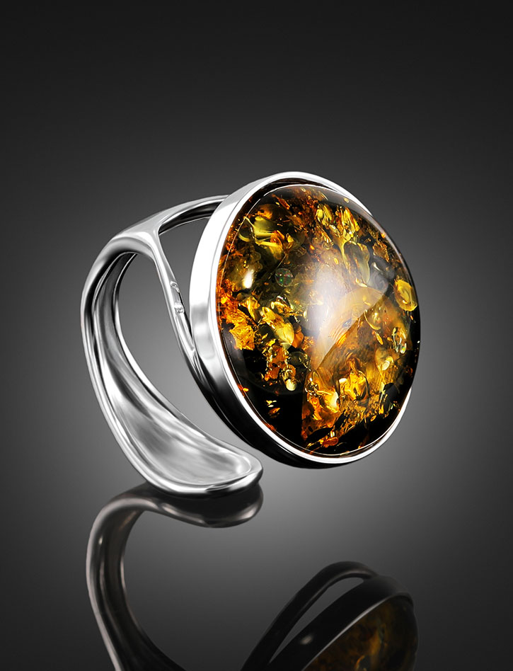 Кольцо «Глянец» с вставкой натурального искрящегося зеленого янтаря