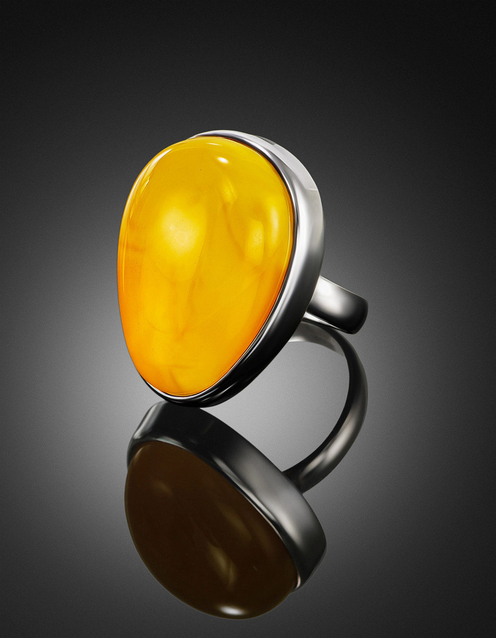 Кольцо «Глянец» со вставкой из медового янтаря в форме капли