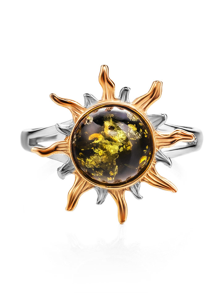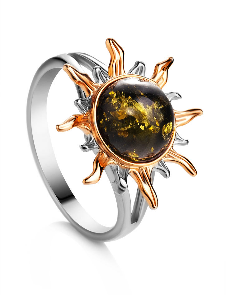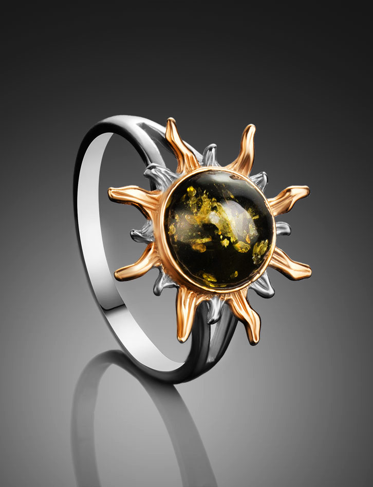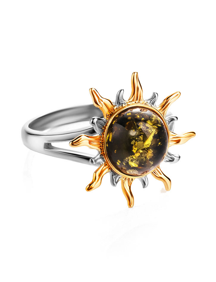 Кольцо из искрящегося зелёного янтаря «Гелиос»