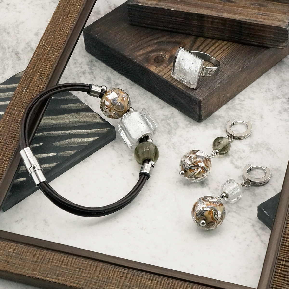 Кольцо изготовлено из муранского стекла и гипоаллергенной ювелирной стали, что очень важно для людей с чувствительной кожей. Металл не темнеет и не подвергается воздействиям окружающей среды, надолго обеспечивая красивый внешний вид изделия. Размер стеклянного элемента - 2,3x2,3 см. Кольцо безразмерное, регулируется с 16 до 19 размера. Вес - 5  гр.