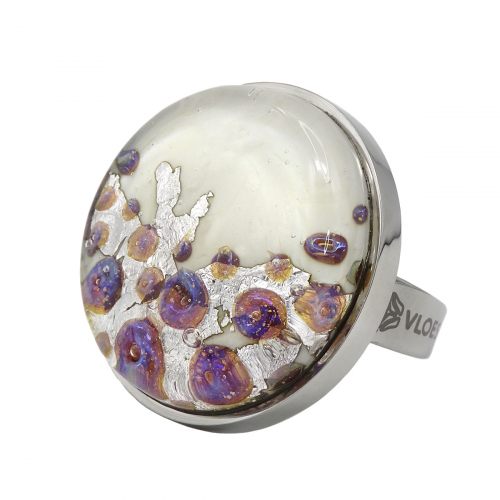 Кольцо изготовлено из муранского стекла и гипоаллергенной ювелирной стали, что очень важно для людей с чувствительной кожей. Металл не темнеет и не подвергается воздействиям окружающей среды, надолго обеспечивая красивый внешний вид изделия. Диаметр стеклянного элемента - 2 см. Кольцо безразмерное, регулируется с 16 до 19 размера. Вес - 8 гр.