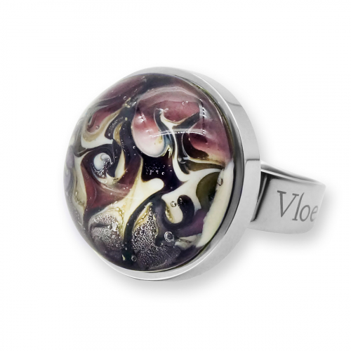 Кольцо изготовлено из муранского стекла и гипоаллергенной ювелирной стали, что очень важно для людей с чувствительной кожей. Металл не темнеет и не подвергается воздействиям окружающей среды, надолго обеспечивая красивый внешний вид изделия. Диаметр стеклянного элемента - 2 см. Кольцо безразмерное, регулируется с 16 до 19 размера. Вес - 8 гр.