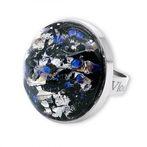 Кольцо изготовлено из муранского стекла и гипоаллергенной ювелирной стали, что очень важно для людей с чувствительной кожей. Металл не темнеет и не подвергается воздействиям окружающей среды, надолго обеспечивая красивый внешний вид изделия. Диаметр стеклянного элемента - 2 см. Кольцо безразмерное, регулируется с 16 до 19 размера. Вес - 8 гр.