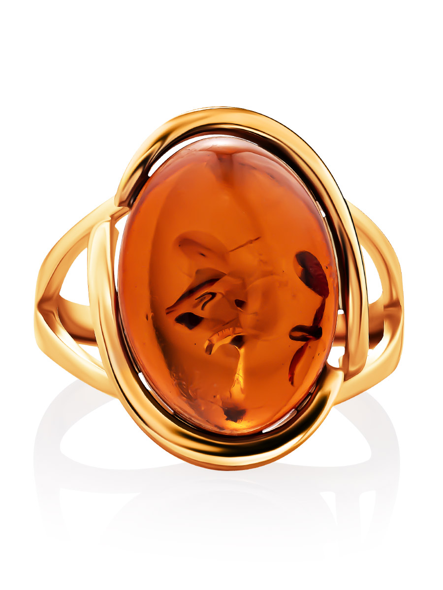 Кольцо из натурального балтийского янтаря коньячного цвета «Штраус»