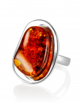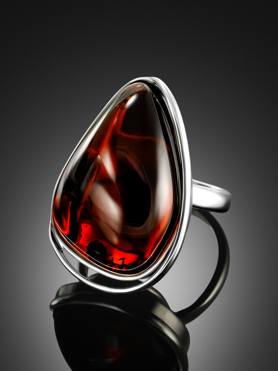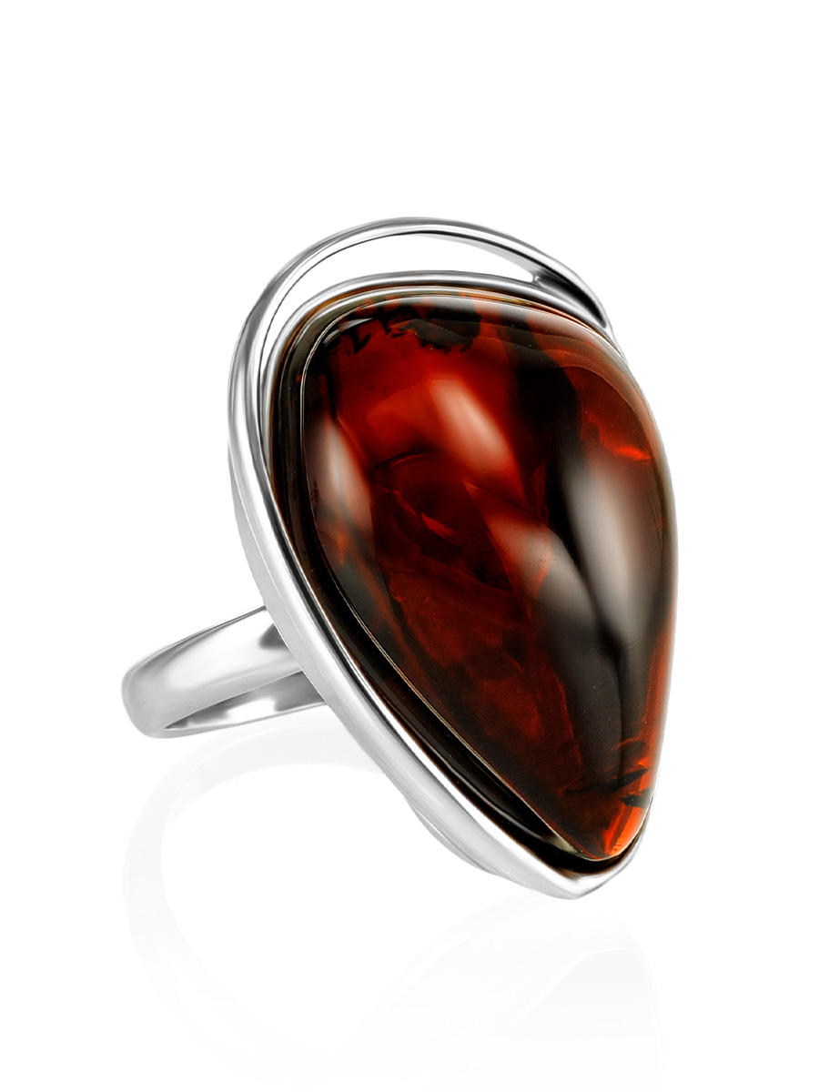 Кольцо из натурального цельного янтаря вишнёвого оттенка «Лагуна»