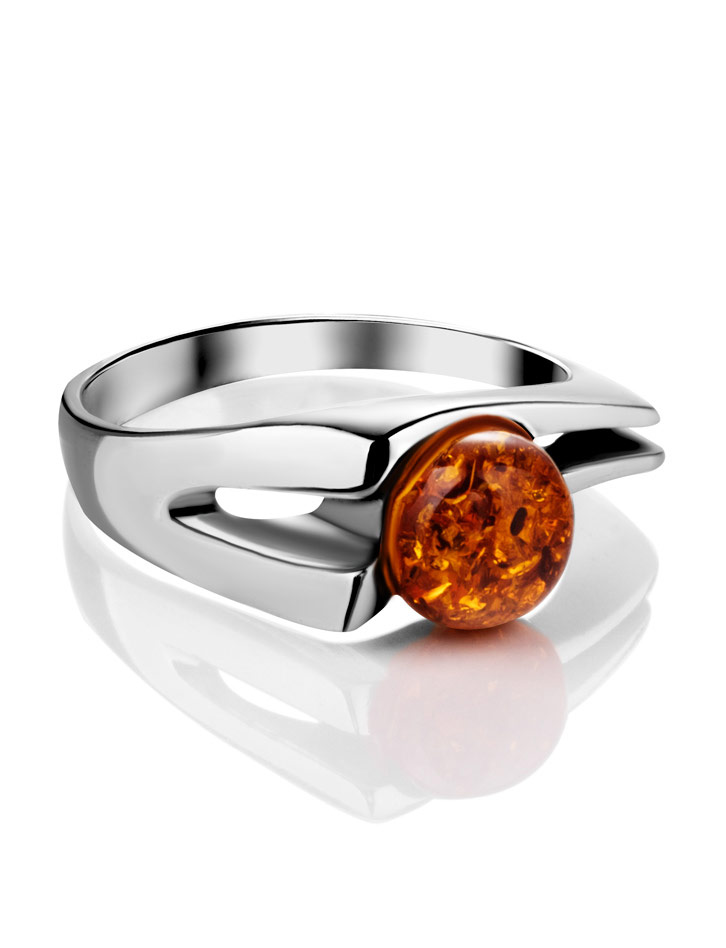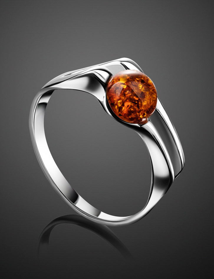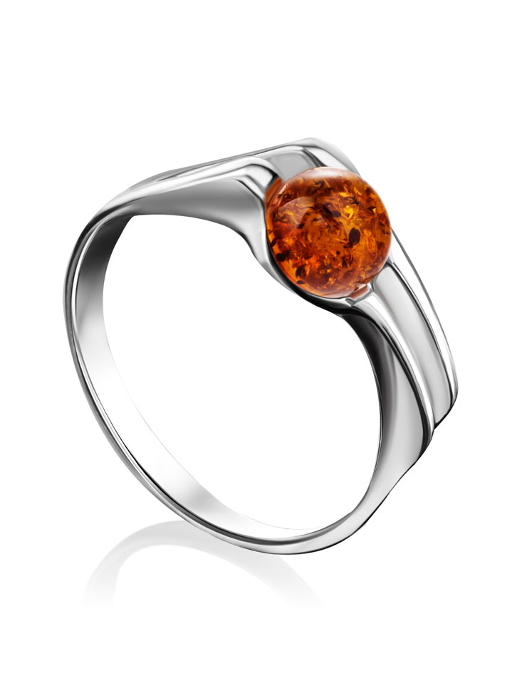 Кольцо из натурального искрящегося янтаря коньячного цвета «Токио»