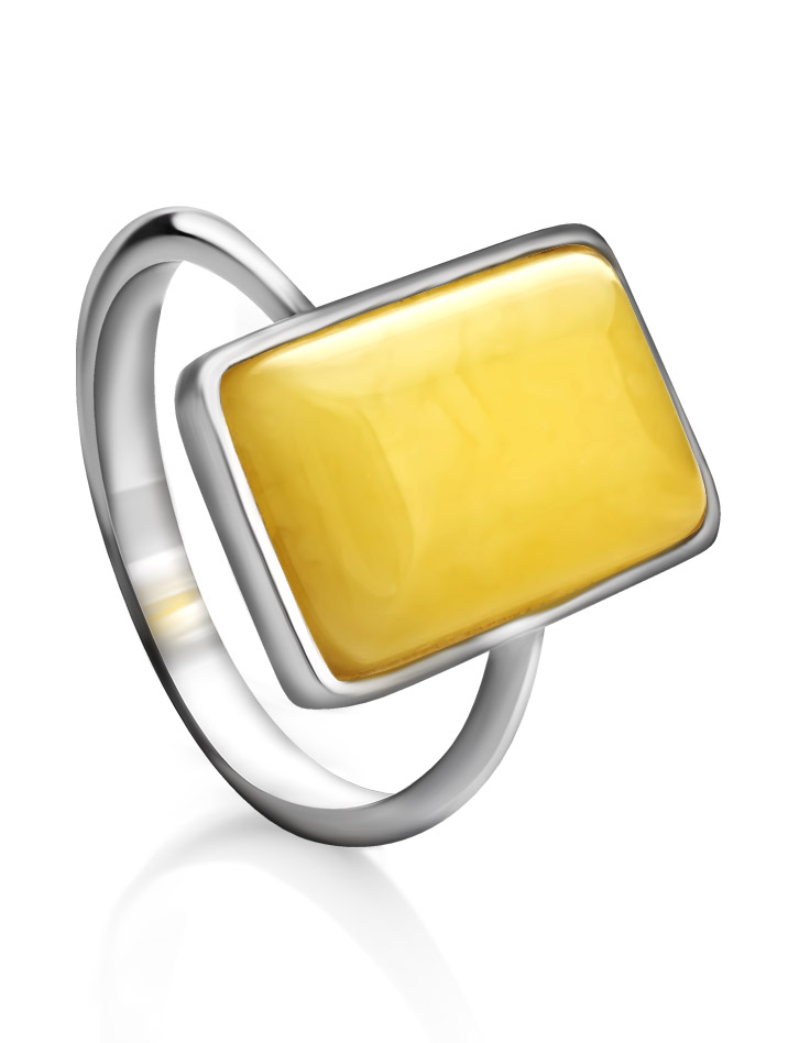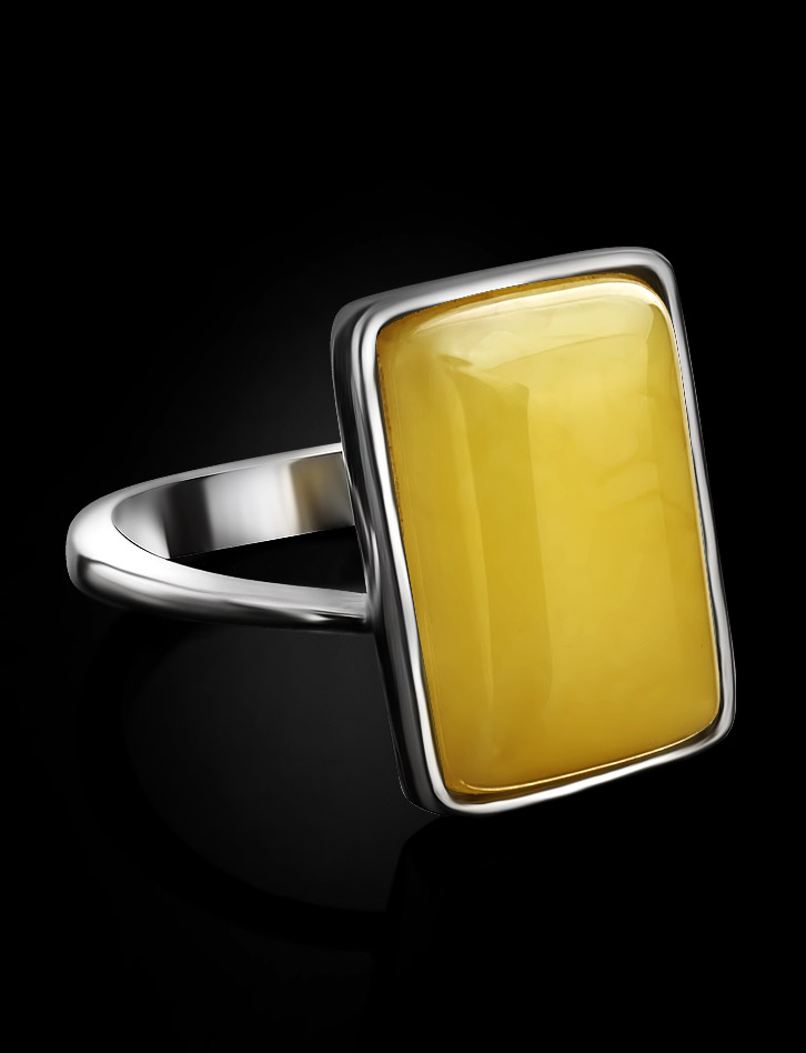 Размеры камня (мм): 10x16 Вес изд..показатьелия (г): 3.4 Цвет: медовый Материалы: Натуральный янтарь / Серебро 925°Яркое кольцо из натурального балтийского янтаря медового цвета — стильное дополнение к любому вашему образу. Вы можете собрать полный комплект украшений, состоящий из кольца, кулона и серёг._x000D_