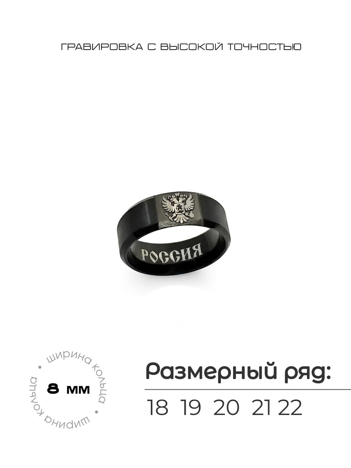 Мужское кольцо из нержавеющей стали с гравировкой герба России