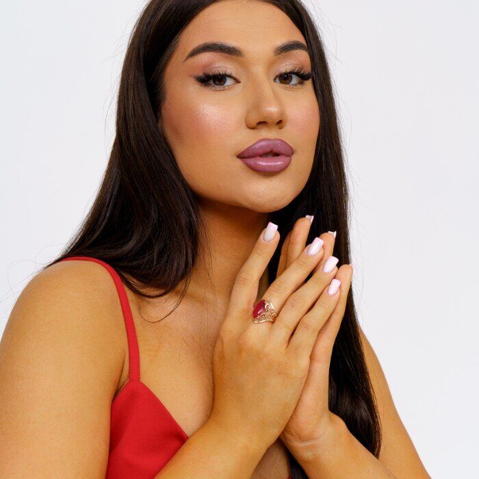 Кольцо коллекция "Дубай", покрытие: позолота, вставка: иск. рубин, цвет: малиновый, р-р 19, Уценка, арт. 08.1343