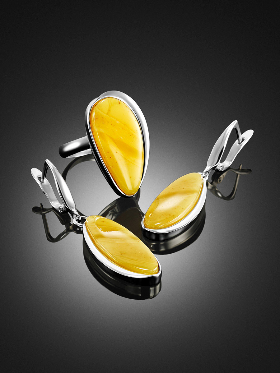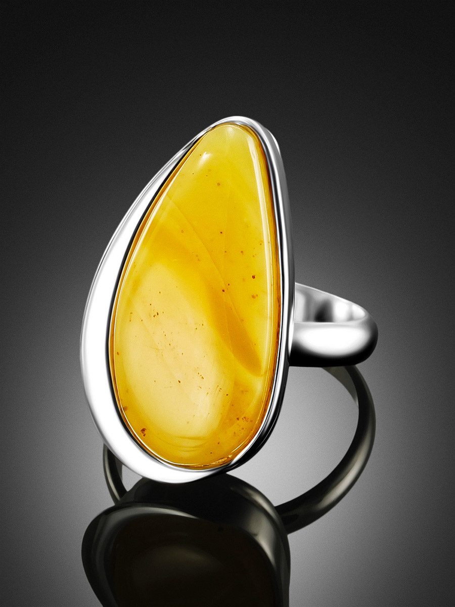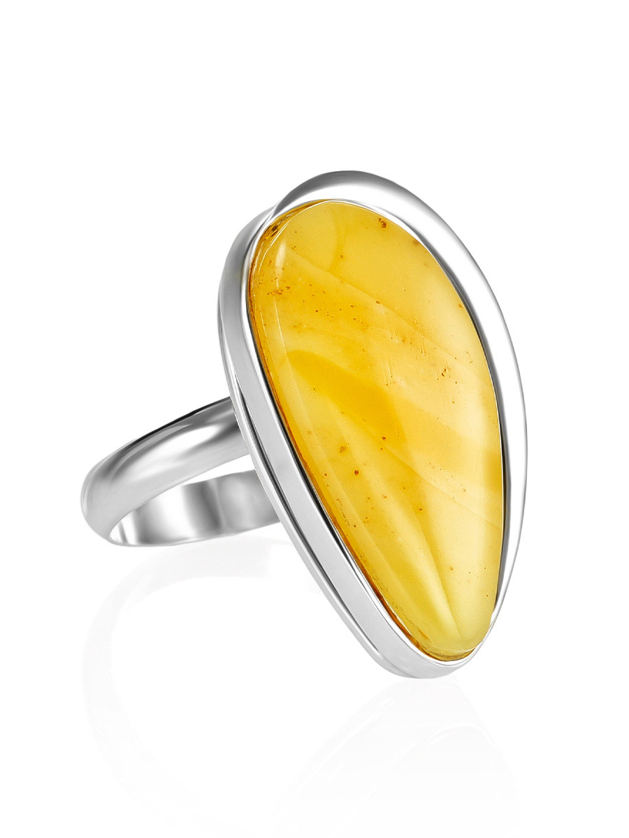Кольцо «Лагуна» с натуральным янтарём медового цвета в изящном обрамлении