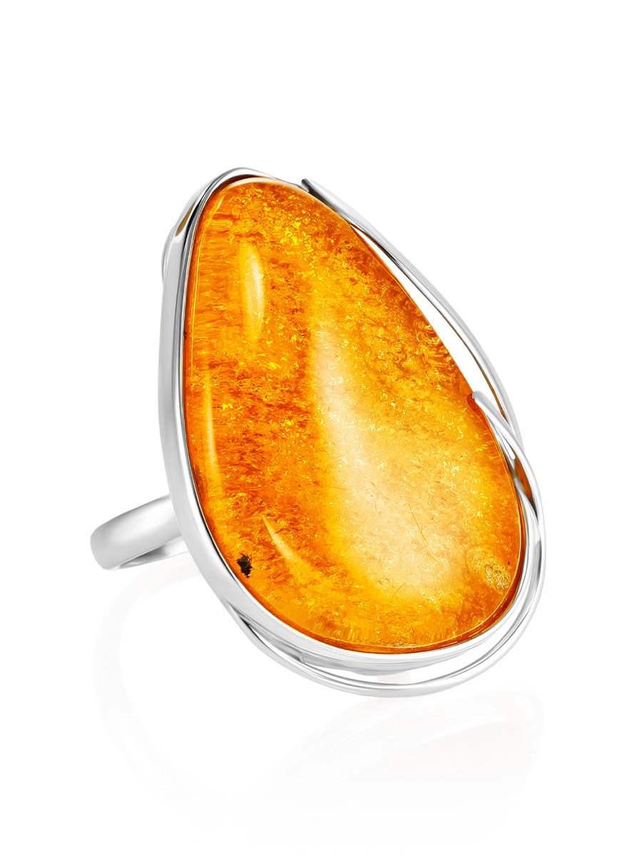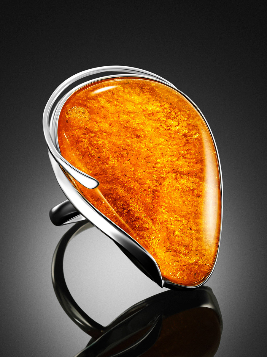Кольцо «Маньяна» украшенное вставкой из натурального янтаря с природной корочкой