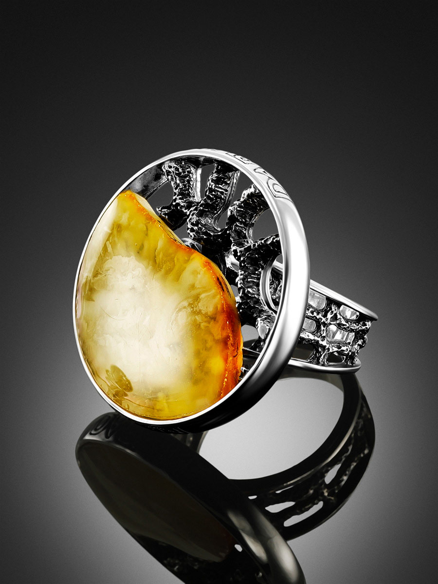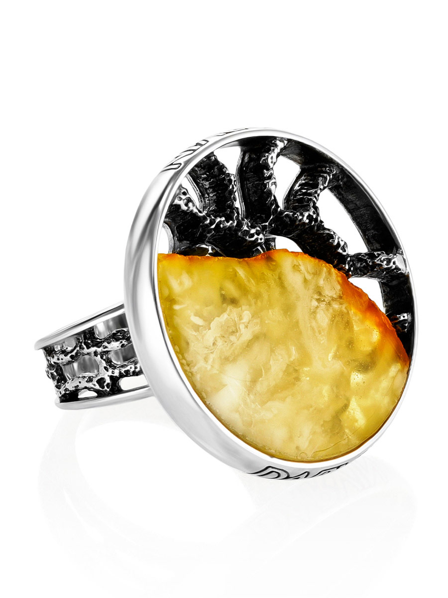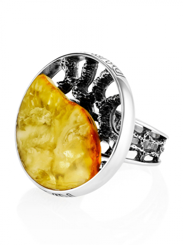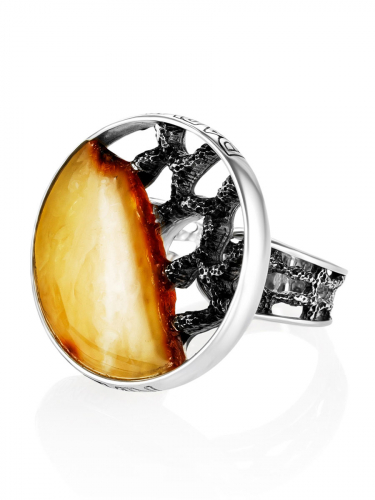 Кольцо «Модерн» круглой формы со вставкой из медового янтаря