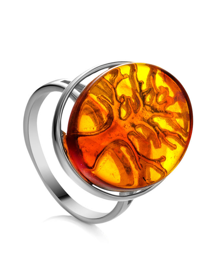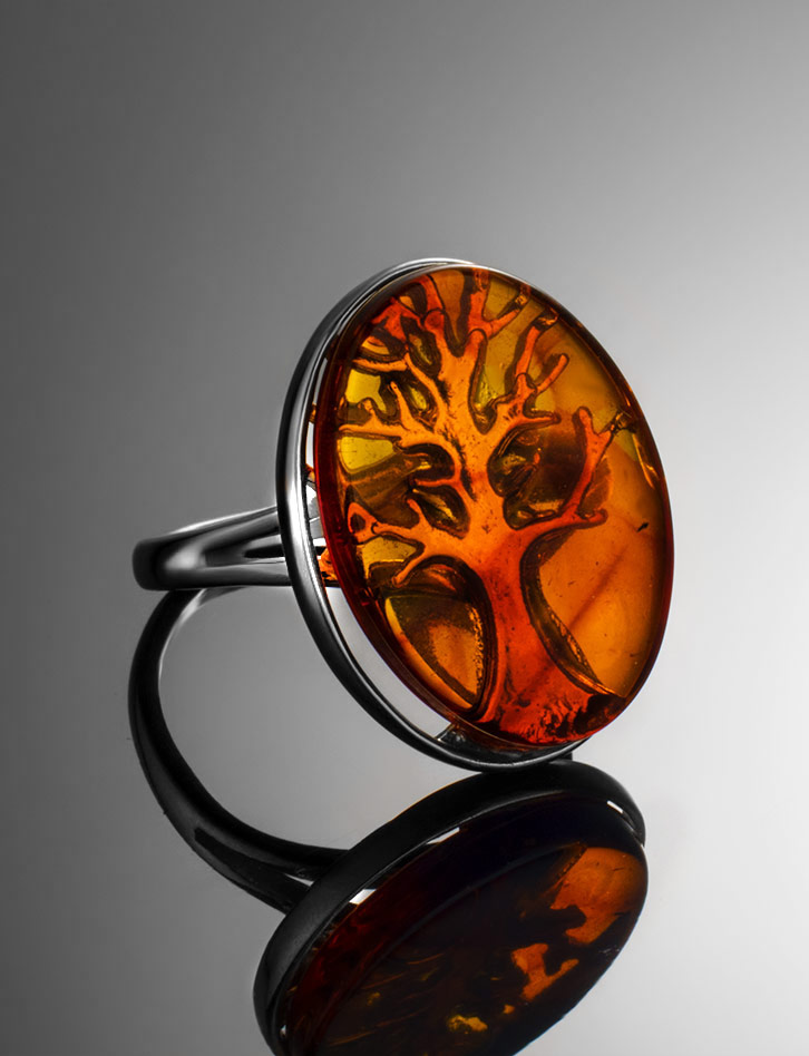 Кольцо овальной формы с необычной оправой, украшенное янтарём «Бельтайн»