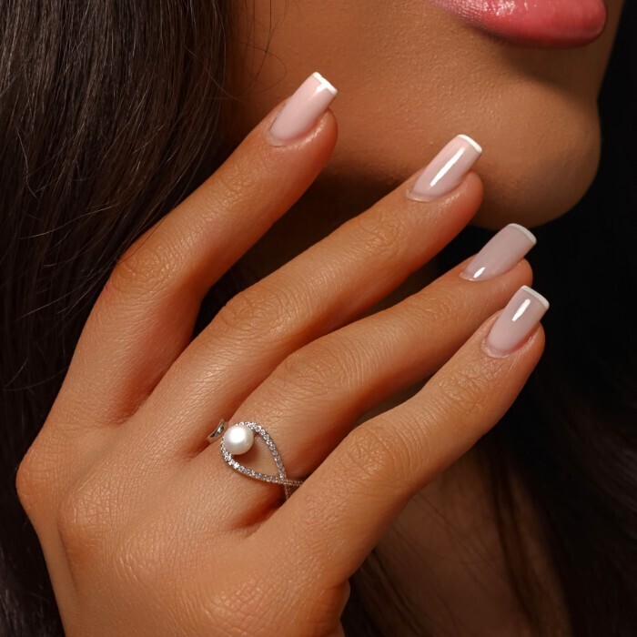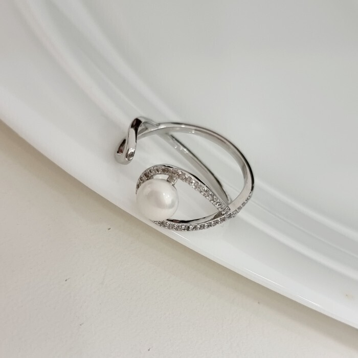 Кольцо разъемное ювелирная бижутерия, покрытие посеребрение, вставка: фианиты и натуральный перламутровый жемчуг, Уценка, арт.08.2508