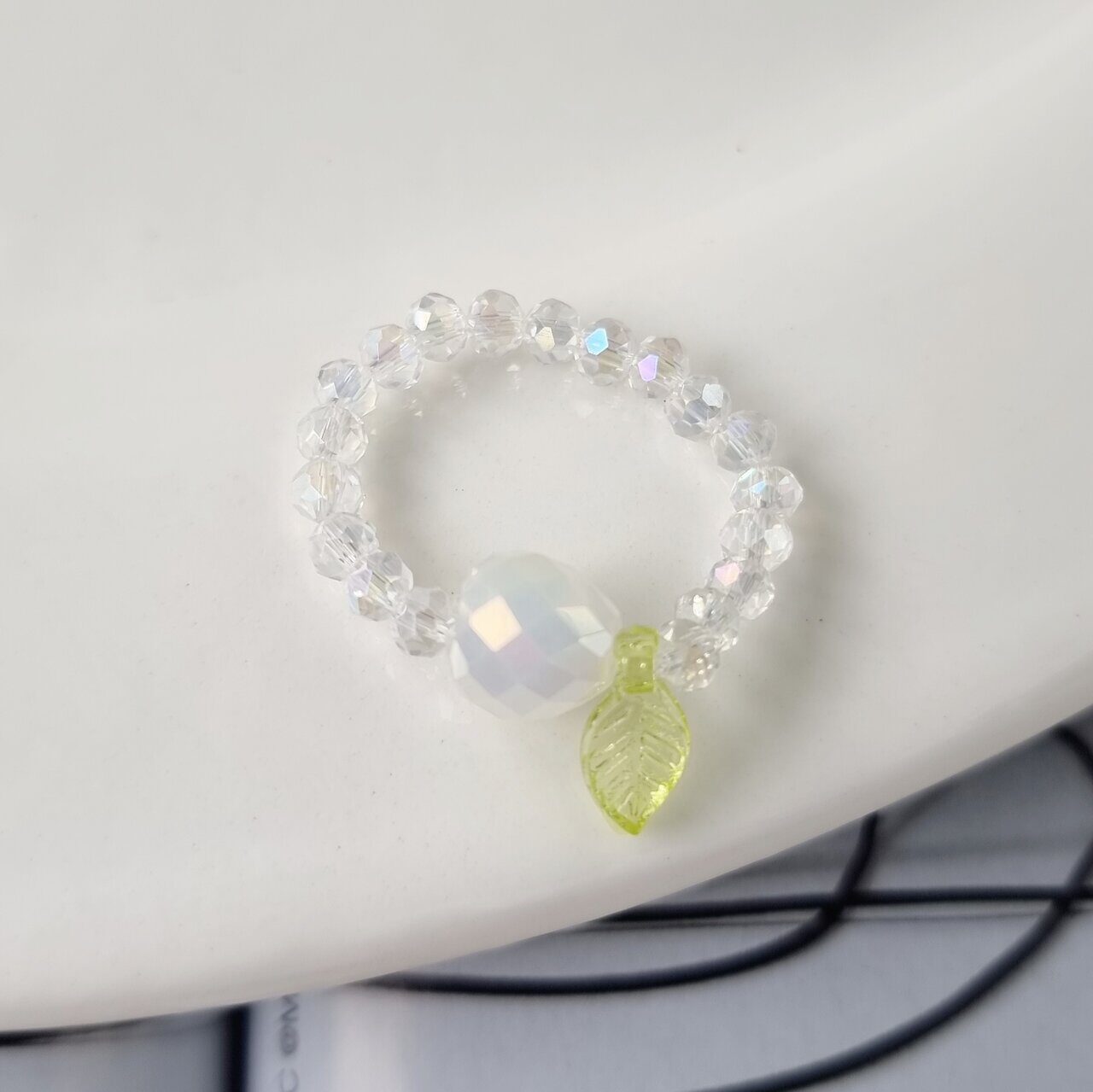 Кольцо-резинка с кулоном, из хрустального бисера, с переливом, арт.204.094