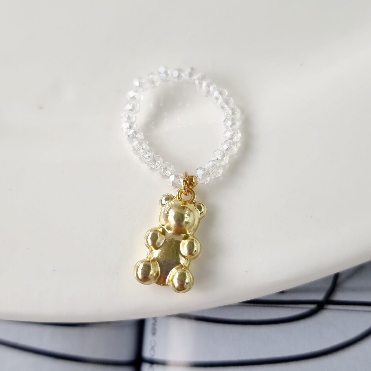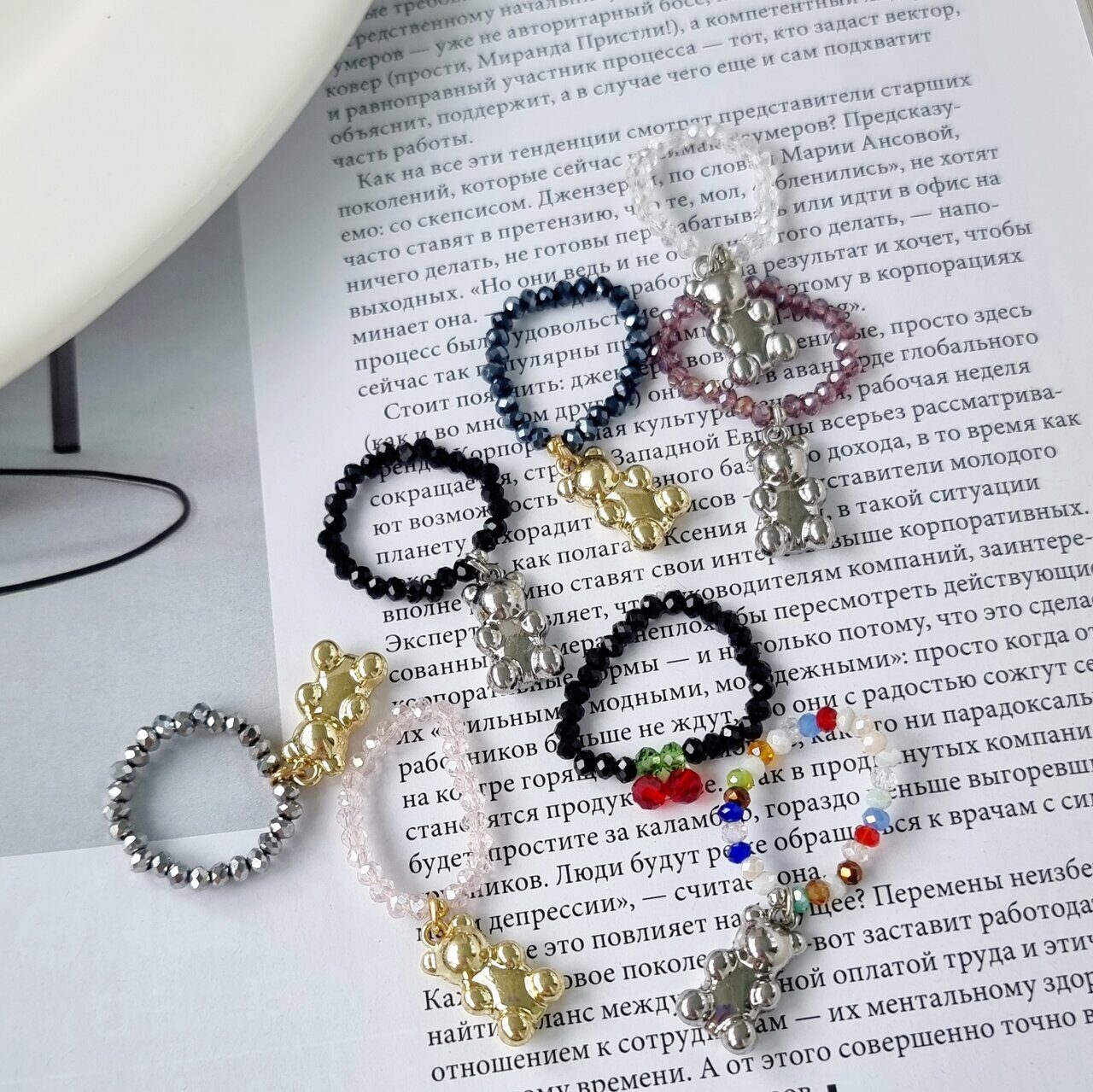 Кольцо-резинка с кулоном, из хрустального бисера, с переливом, арт.204.099