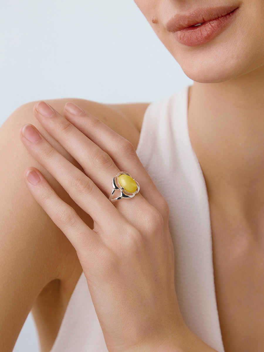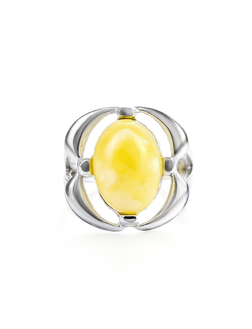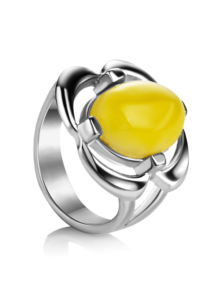 Кольцо с цельным янтарём светло-медового цвета «Фиалка»