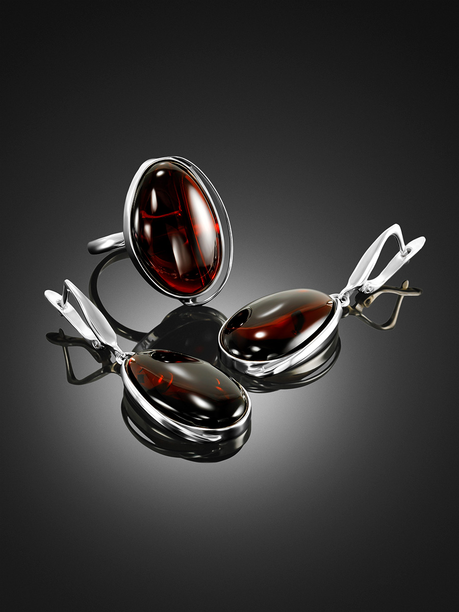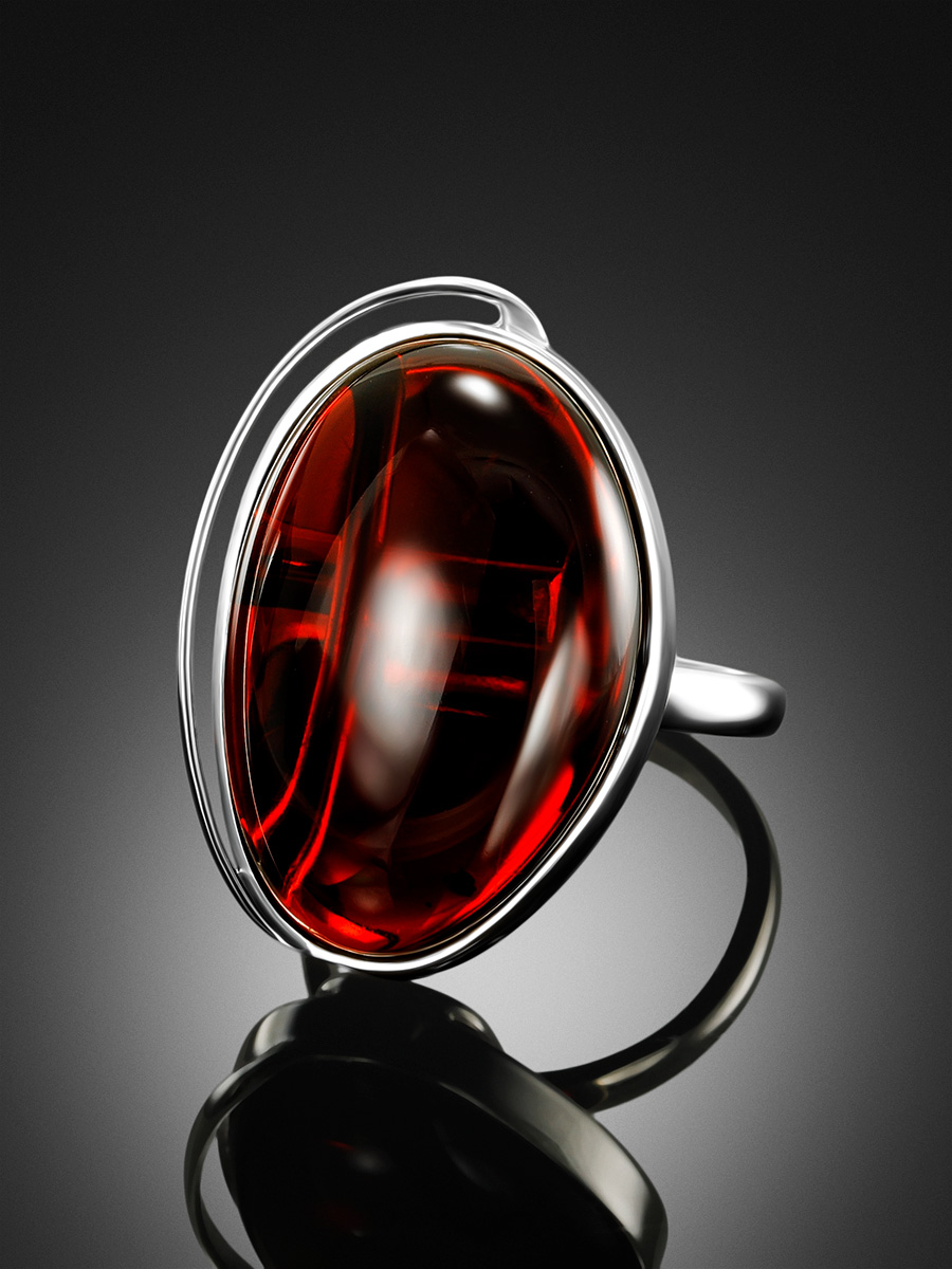 Кольцо с цельным янтарём тёмно-вишнёвого цвета «Лагуна»