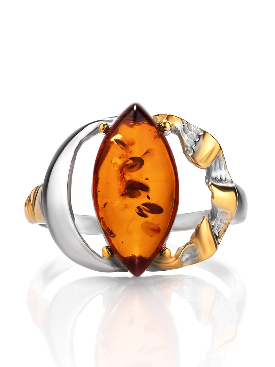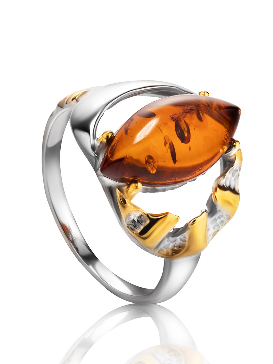 Кольцо с частичным золочением, украшенное коньячным янтарём «Рапсодия»