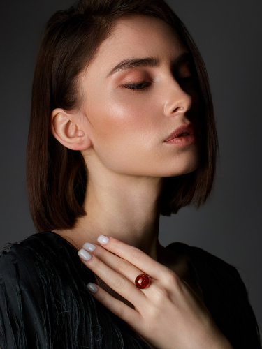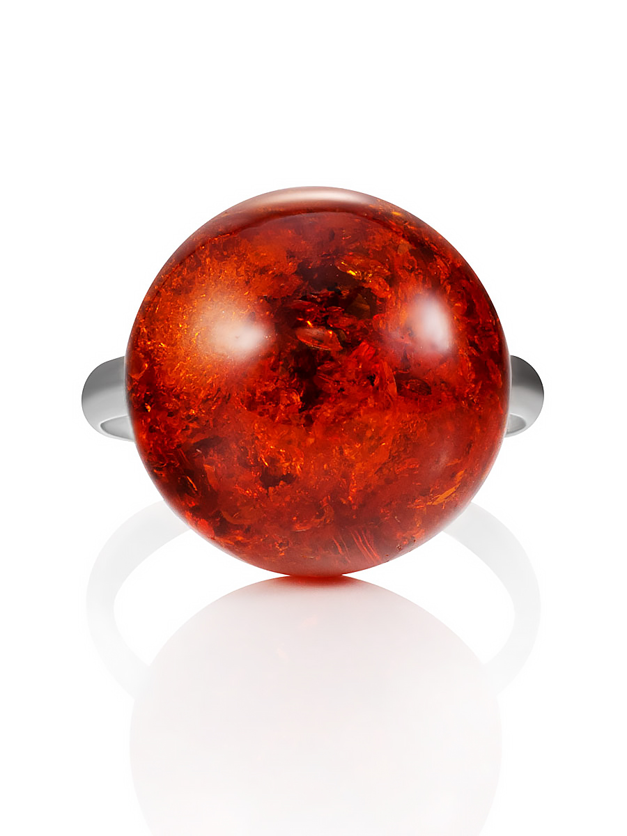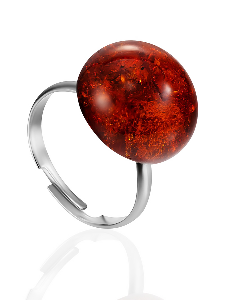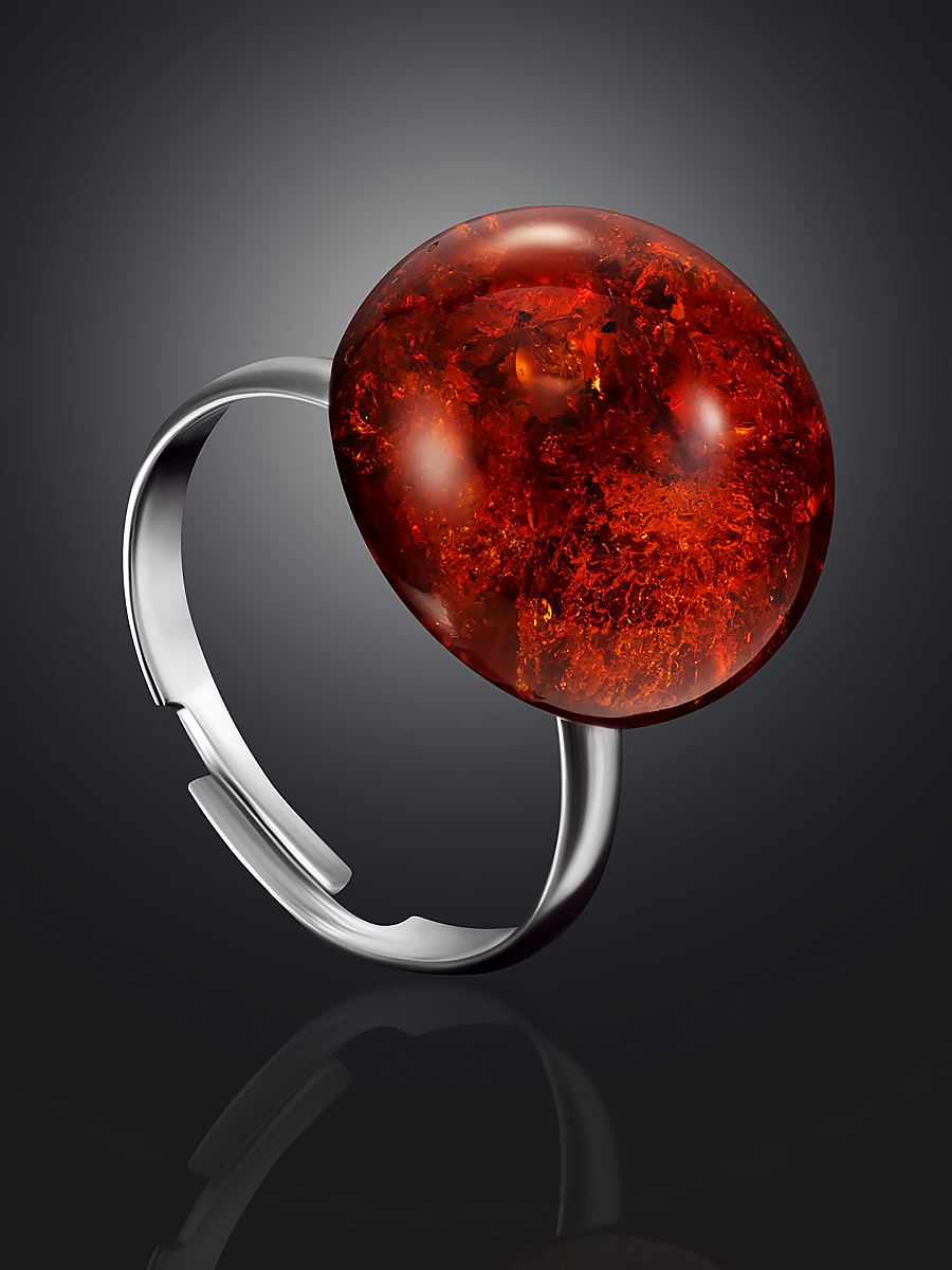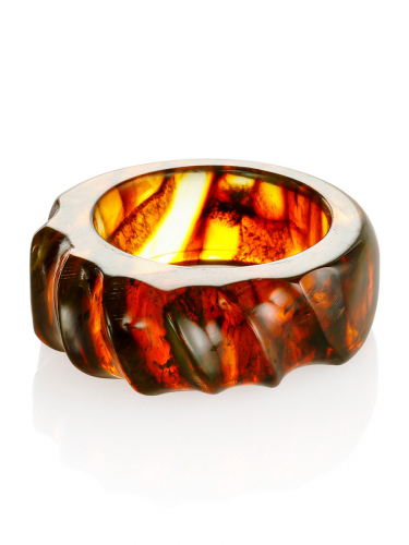 Кольцо с искрящейся янтарной вставкой