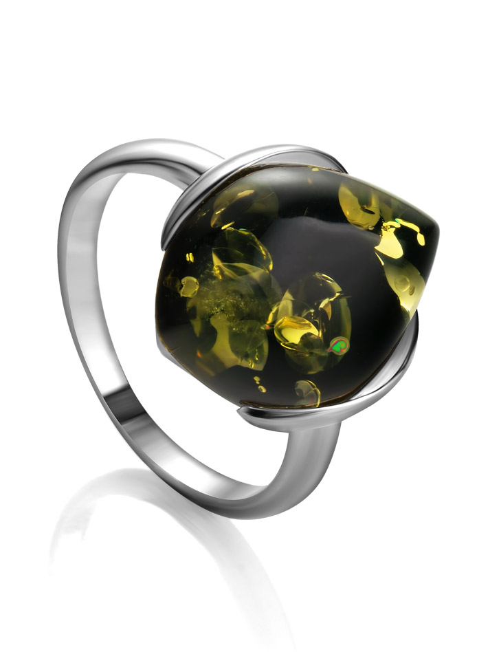 Кольцо с искрящимся зеленым янтарем «Кошачий глаз»