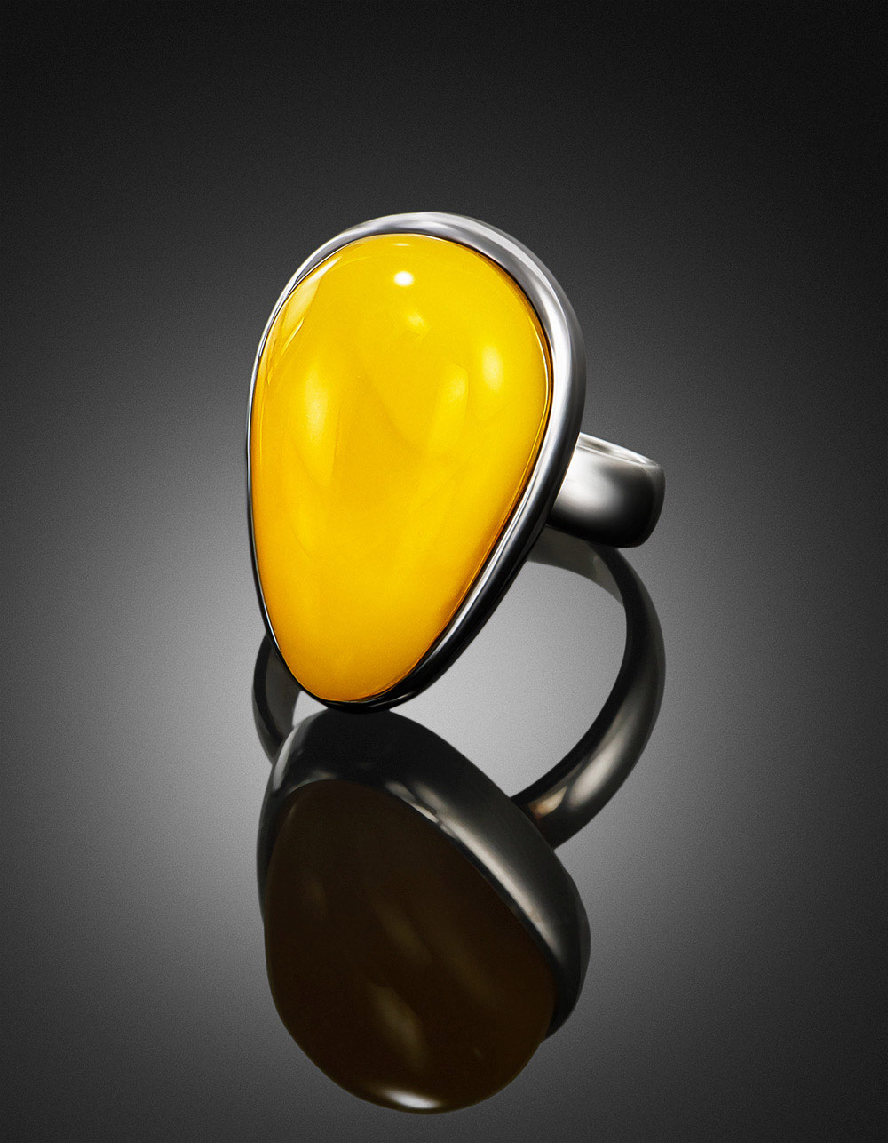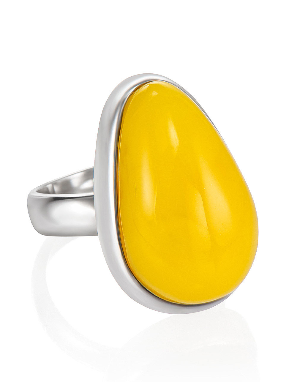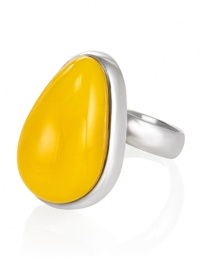 Кольцо с крупной вставкой из натурального медового янтаря «Глянец»