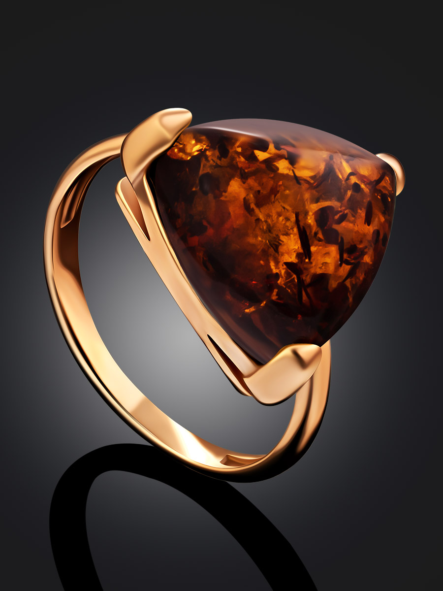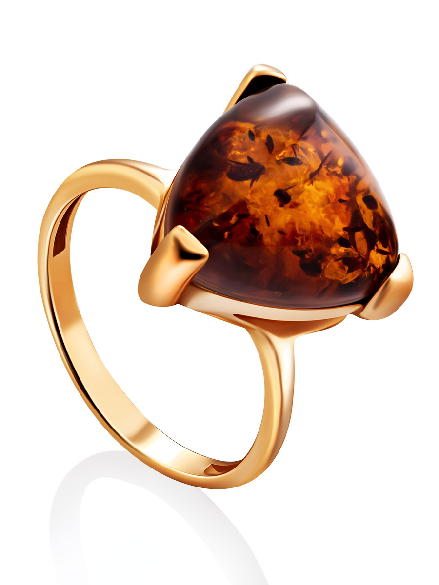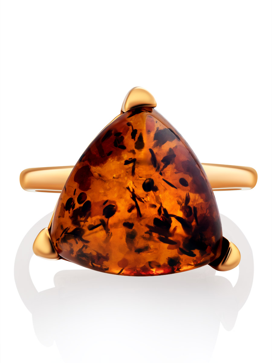 Кольцо с натуральным балтийским коньячным янтарём «Треугольник»