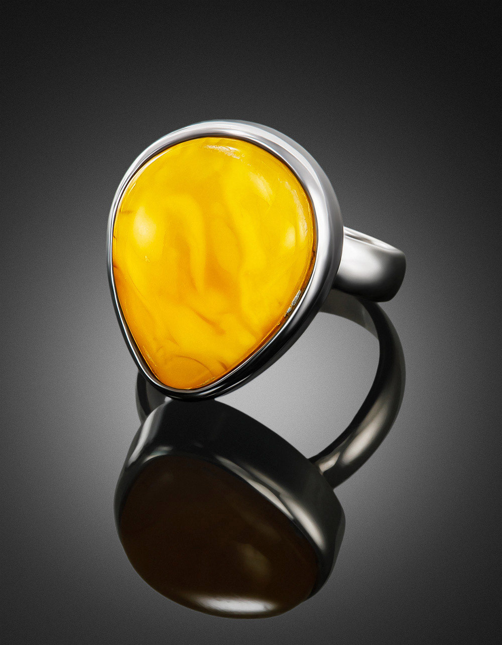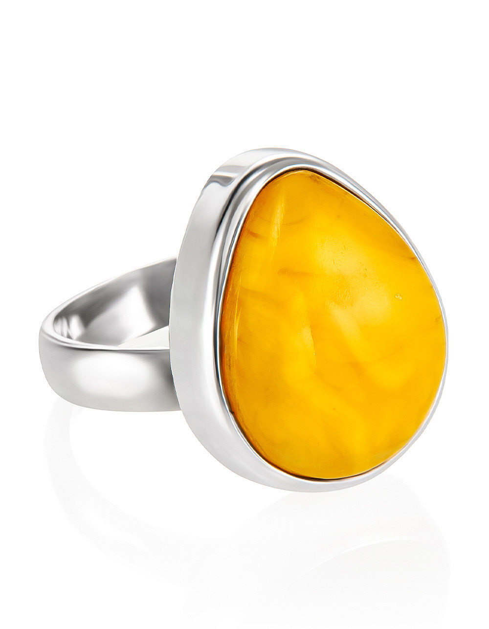 Кольцо с натуральным цельным янтарём медового цвета