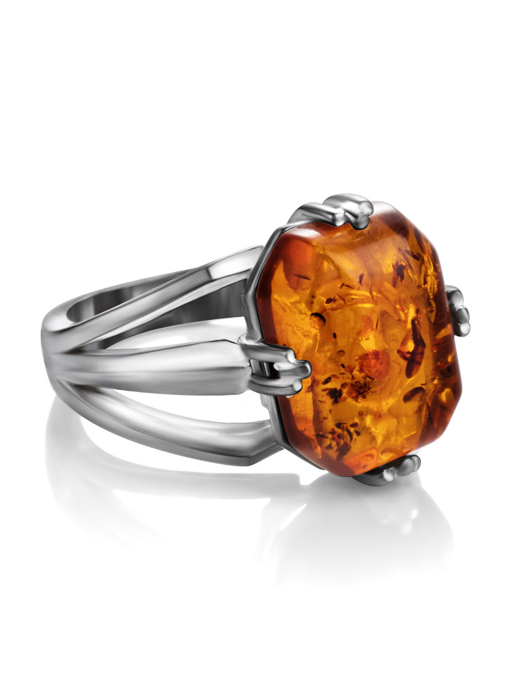 Кольцо с натуральным искрящимся коньячным янтарем «Марокко»
