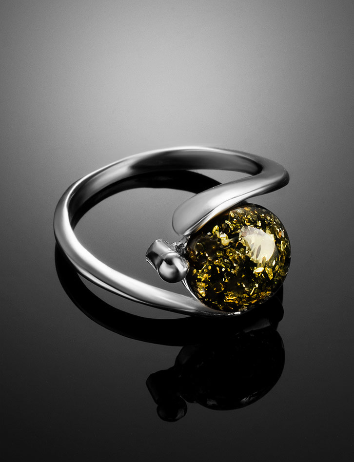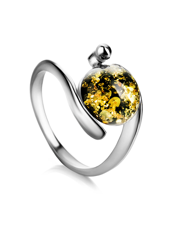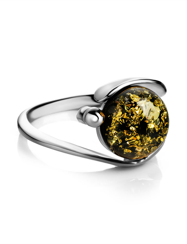 Кольцо с натуральным искрящимся зеленым янтарем «Сфера»