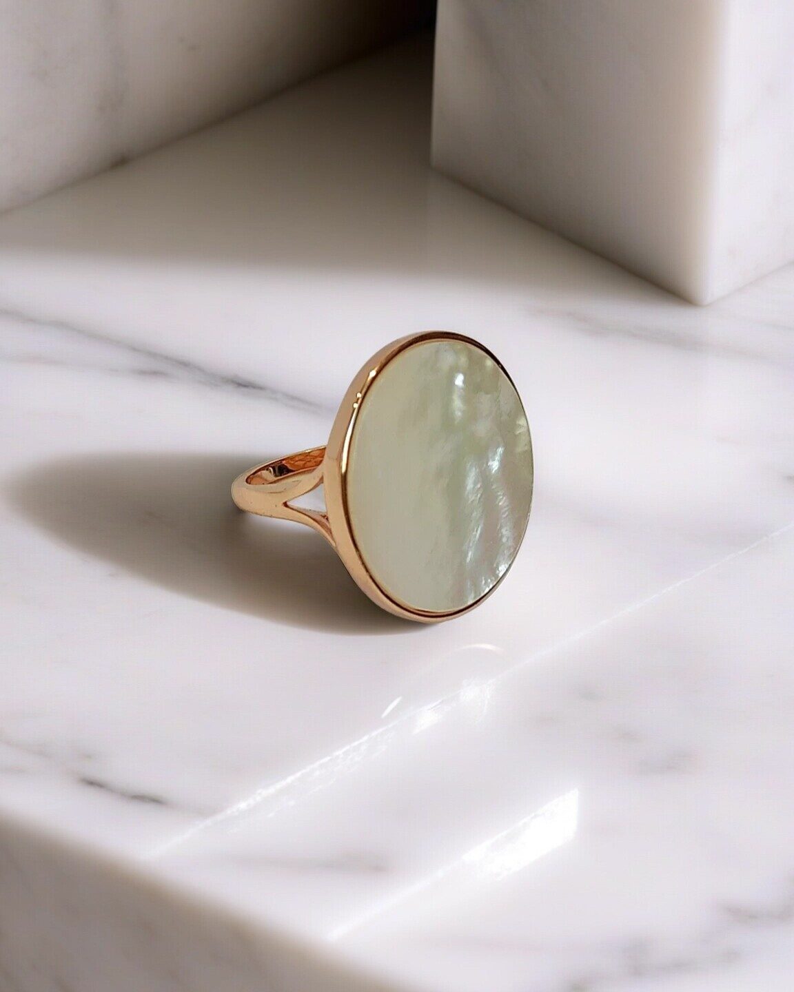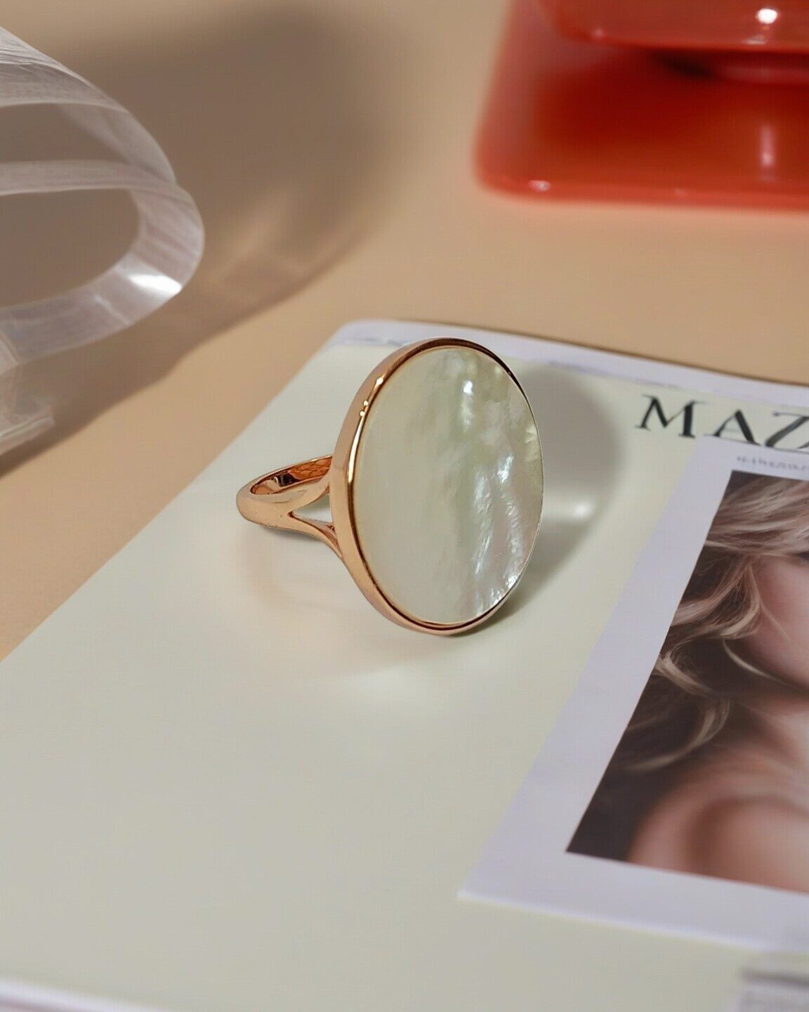 Элегантное кольцо с натуральным перламутром — изысканный аксессуар, который станет идеальным дополнением к вашему образу. Натуральный перламутр поражает своей неповторимой игрой света и переливами оттенков, придавая кольцу особую привлекательность.