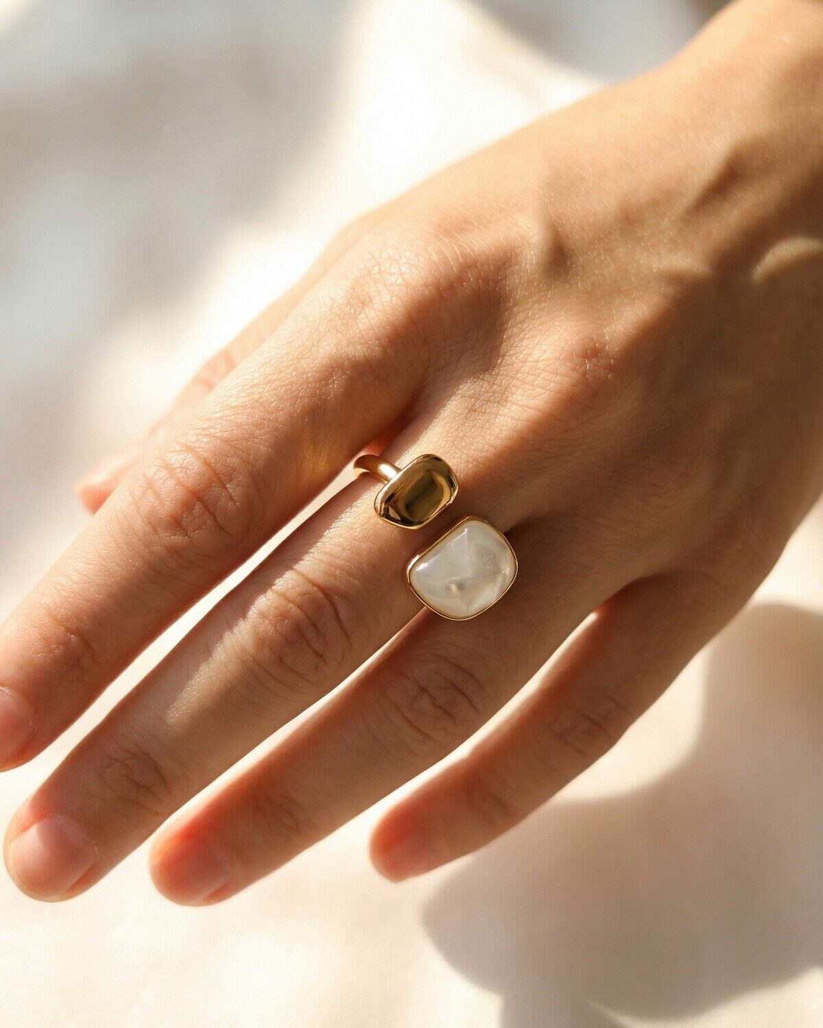 Элегантное кольцо с натуральным перламутром — изысканный аксессуар, который станет идеальным дополнением к вашему образу. Натуральный перламутр поражает своей неповторимой игрой света и переливами оттенков, придавая кольцу особую привлекательность.