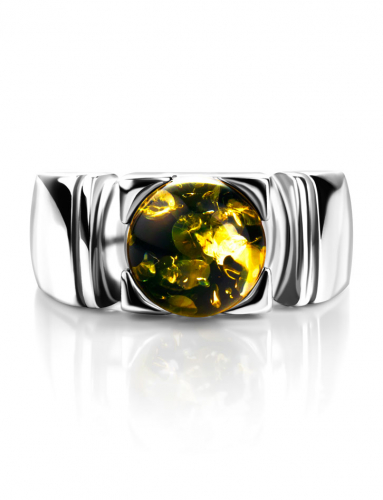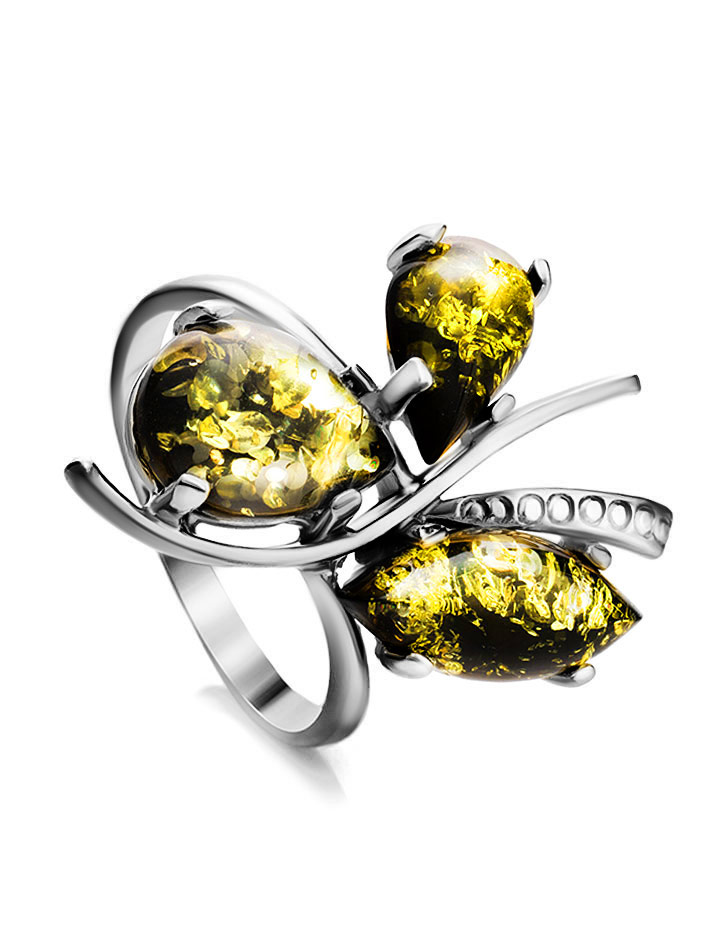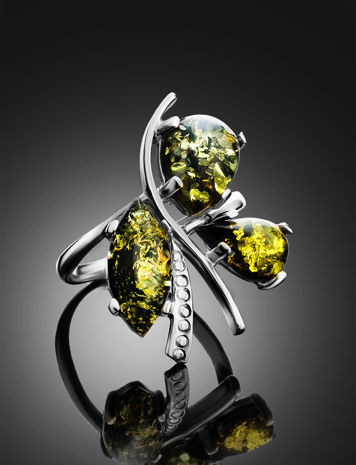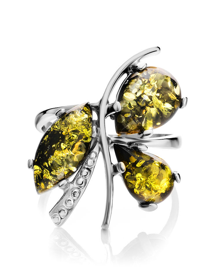 Кольцо с натуральным сверкающим янтарем зеленого цвета «Магнолия»