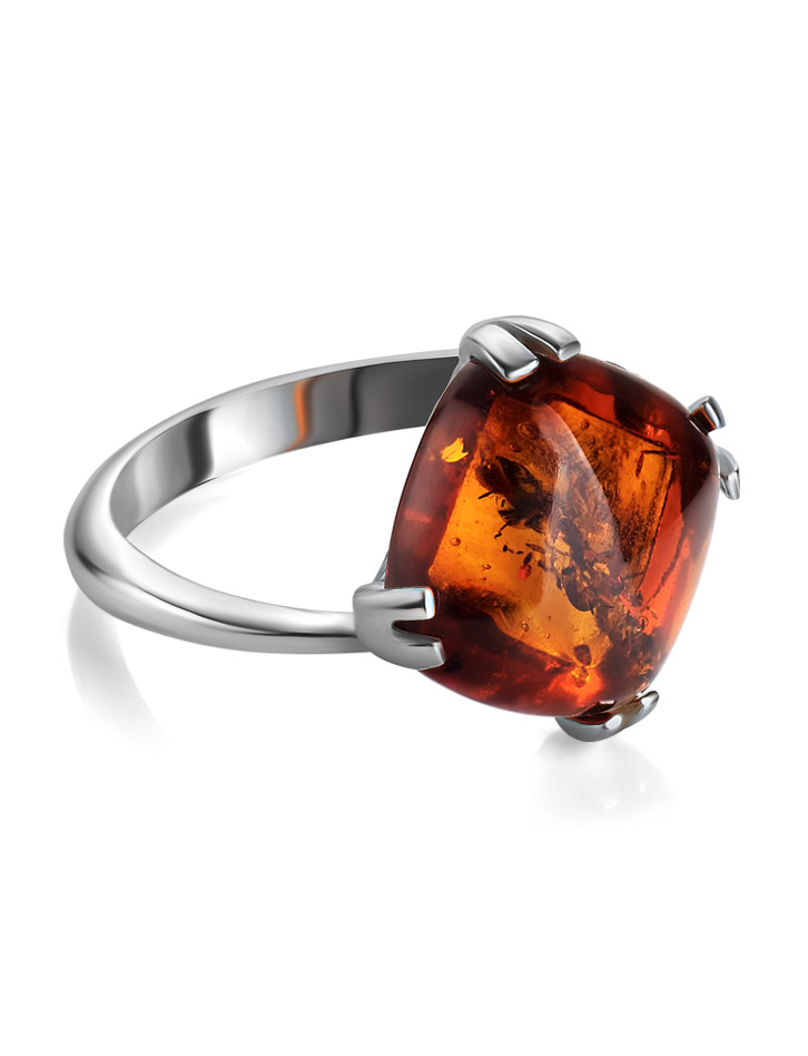 Кольцо с натуральным янтарем коньячного цвета «Византия»