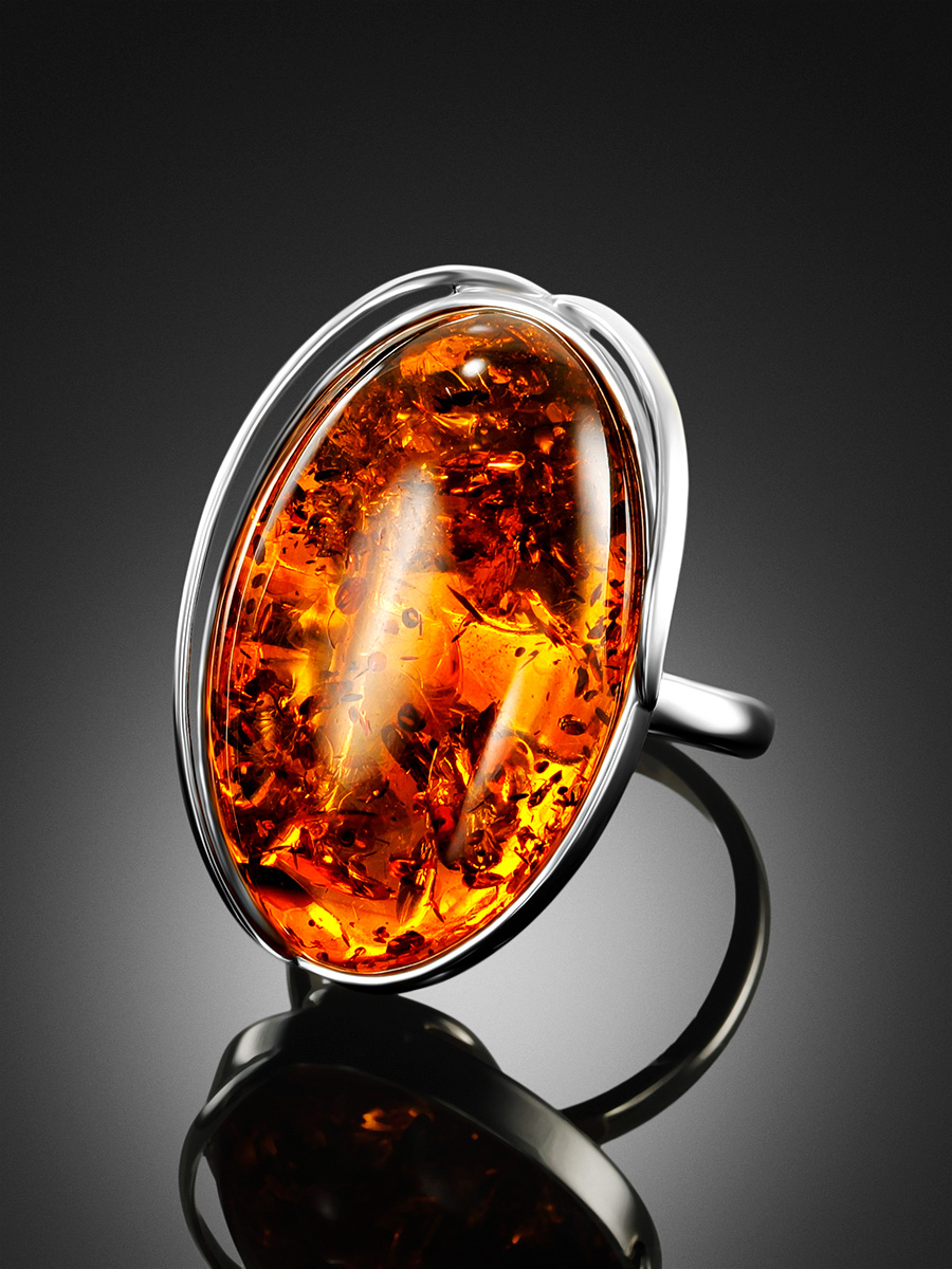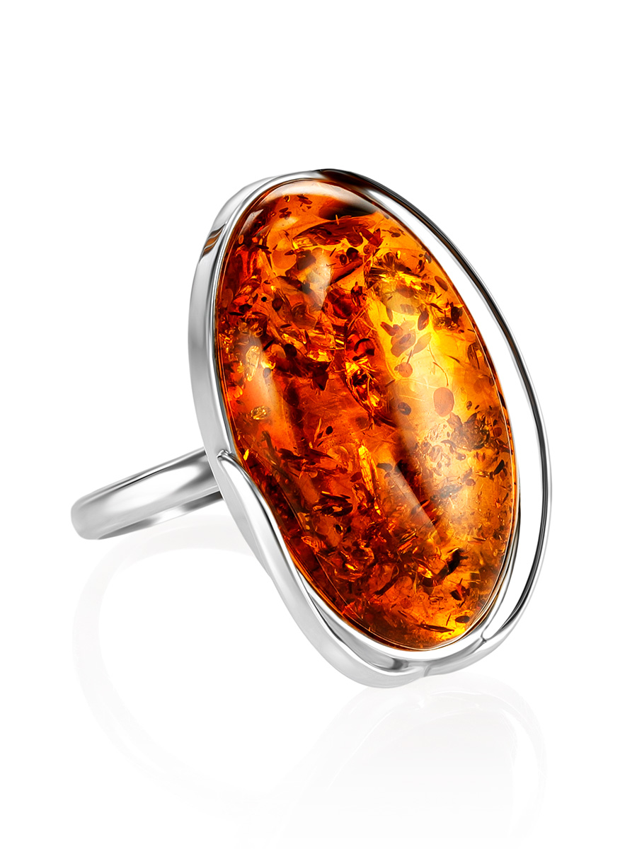 Кольцо с натуральным янтарем красивого коньячного цвета и искорками внутри «Лагуна»