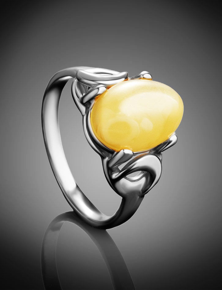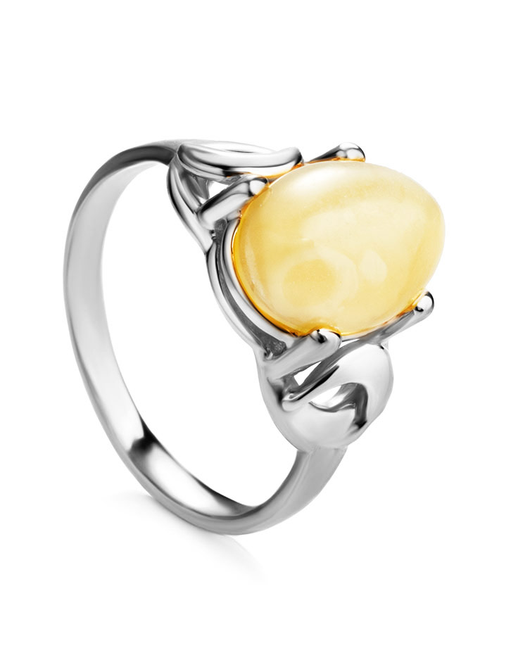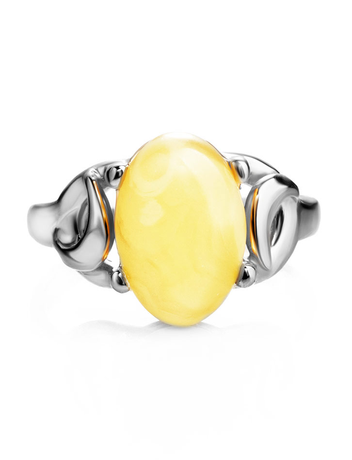 Кольцо с натуральным янтарем молочно-медового цвета «Пруссия»