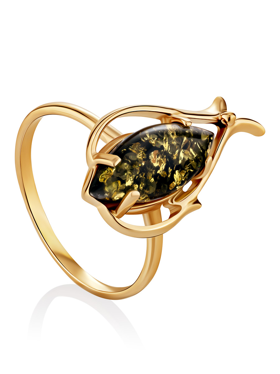 Кольцо с натуральным янтарём «Тюльпан»