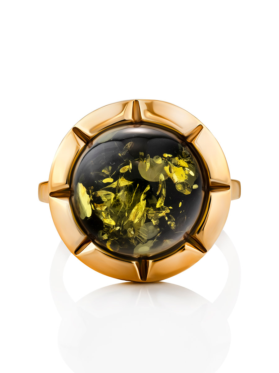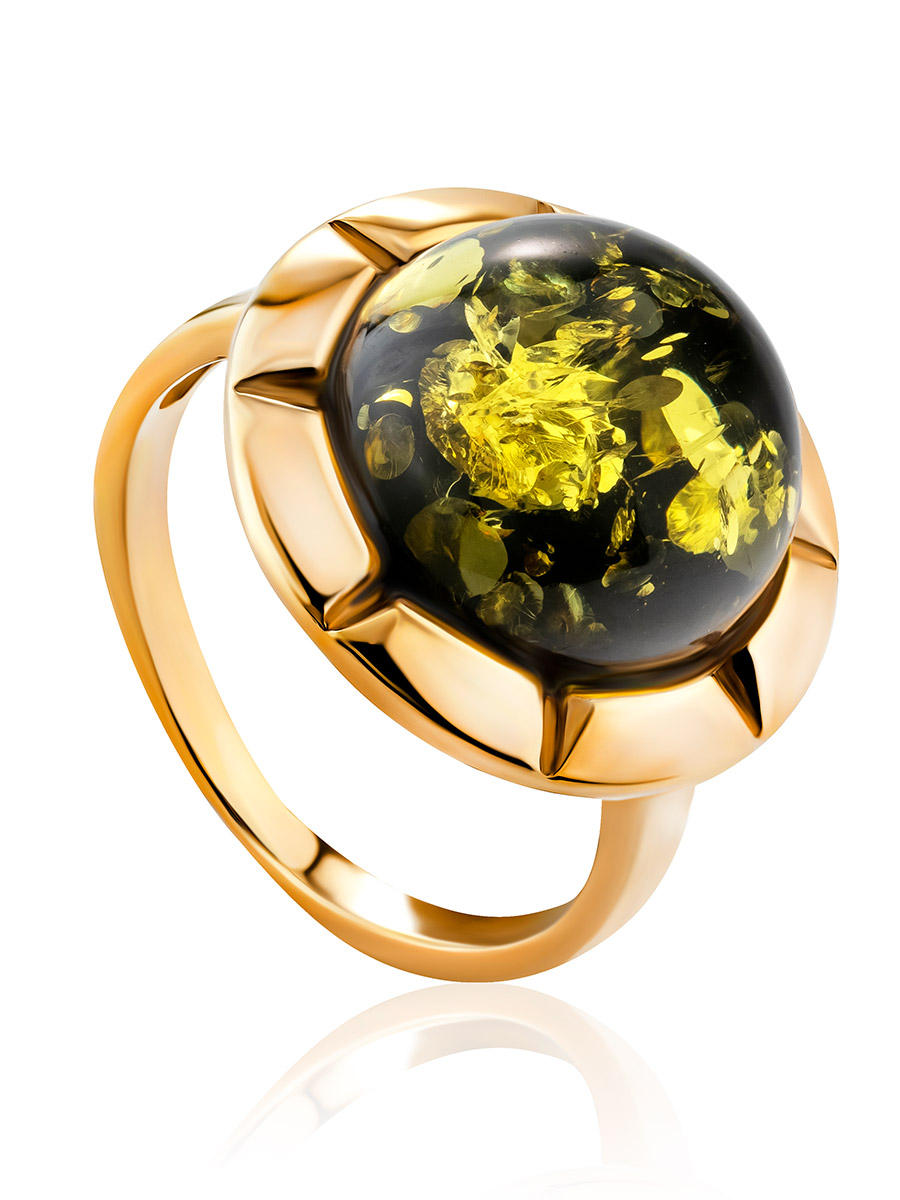 Кольцо с натуральным янтарём зелёного цвета «Камелия»