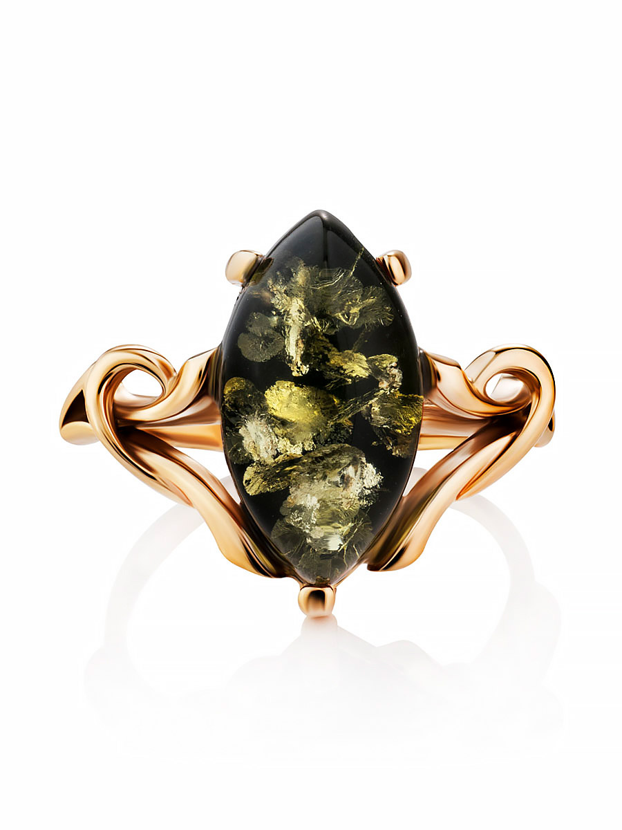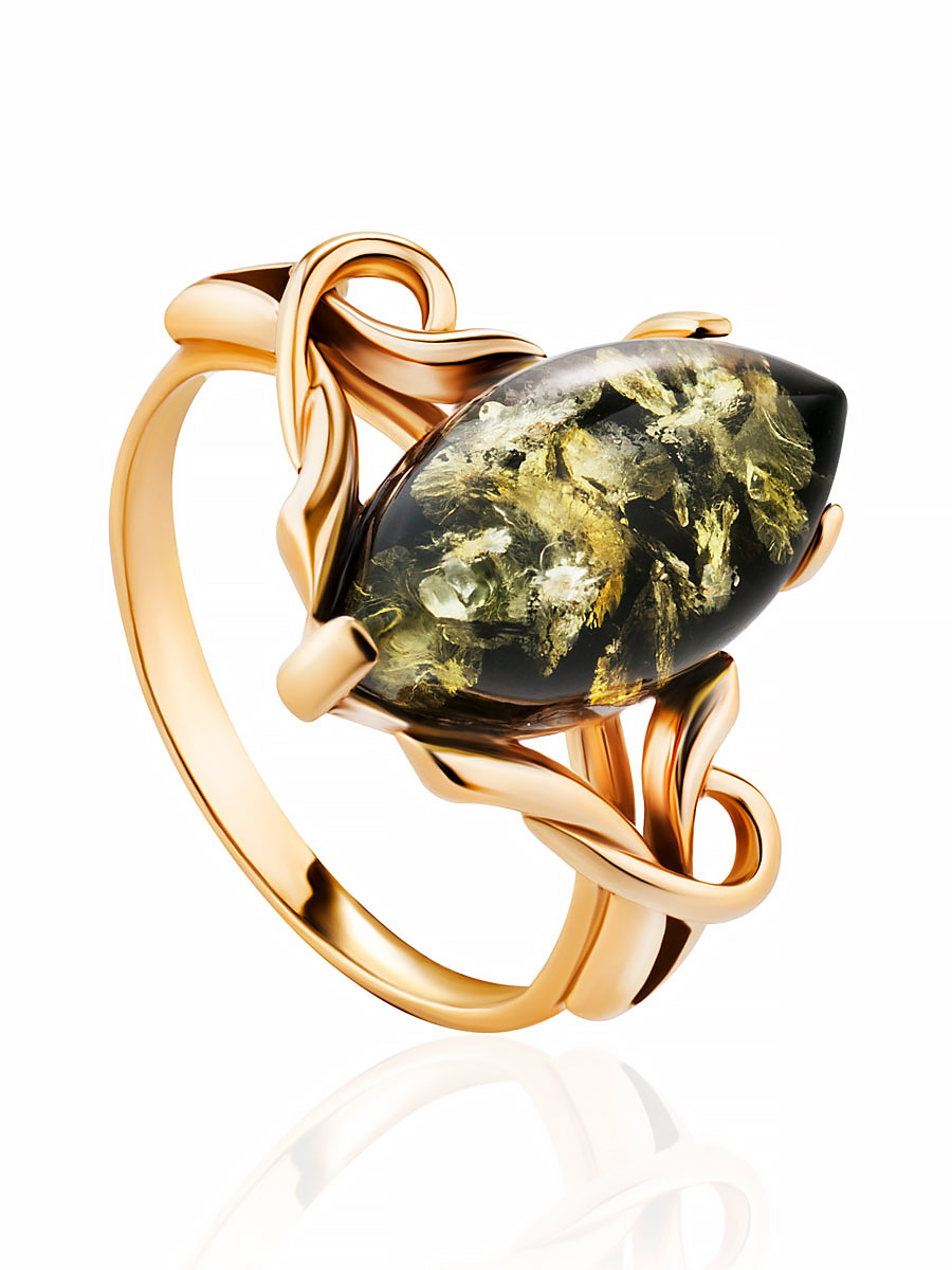 Кольцо с натуральным янтарём зелёного цвета «Констанция»